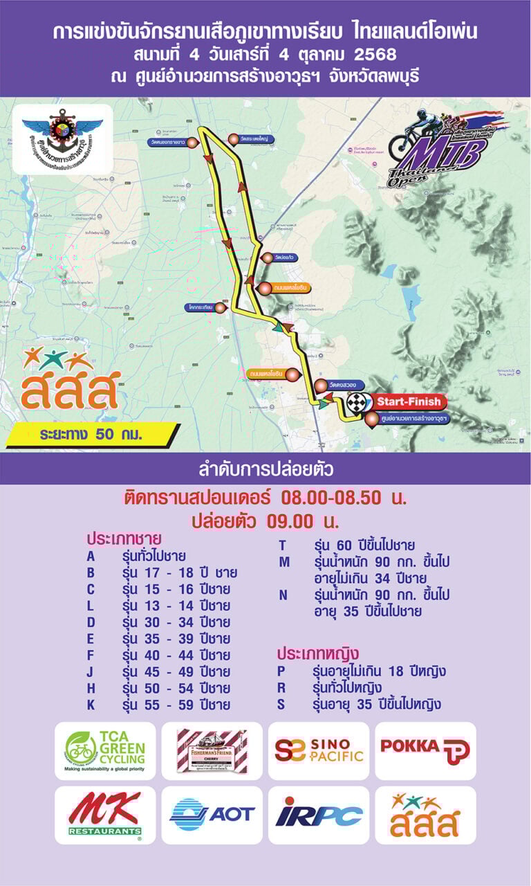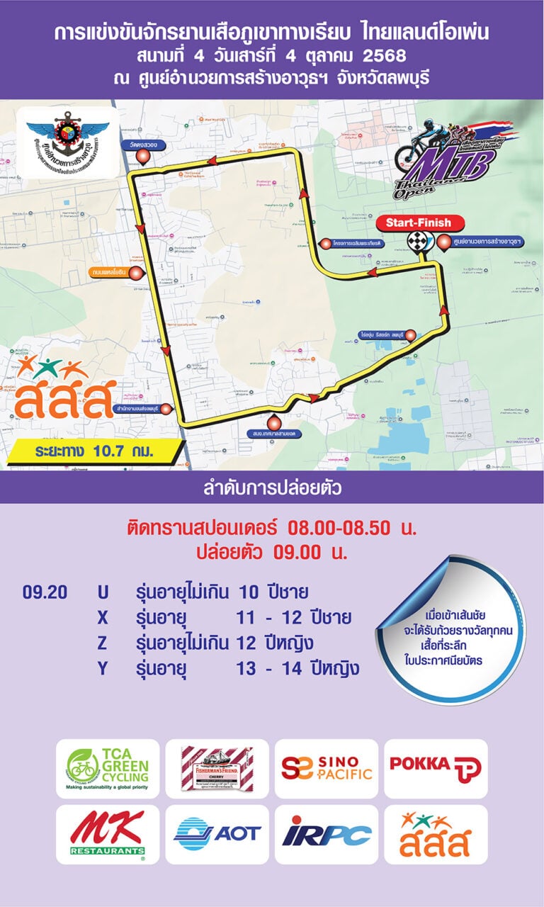 นักปั่นจากทั่วทุกสารทิศ ร่วมชิงชัยศึกสองล้อเสือภูเขาทางเรียบและประเภทถนน “ไทยแลนด์ โอเพ่น” ชิงแชมป์ประเทศไทยฯ ประจำปี 2568 สนามที่ 4 ที่สนามที่ 4 (สนามสุดท้าย) ที่ศูนย์อำนวยการสร้างอาวุธ ศูนย์อุตสาหกรรมป้องกันประเทศและพลังงานทหาร จ.ลพบุรี ระหว่างวันที่ 4-5 ต.ค.68 เพื่อตัดสินว่านักปั่นคนใดจะคว้าแชมป์และได้ครองถ้วยพระราชทานฯ ด้าน “พลตรีปรีติ กุมภิรัตน์” รอง ผบ.ศอว.ศอพท. ยืนยันความพร้อมทุกด้าน มั่นใจช่วยเสริมสร้างเศรษฐกิจและส่งเสริมการท่องเที่ยวได้เป็นอย่างดี