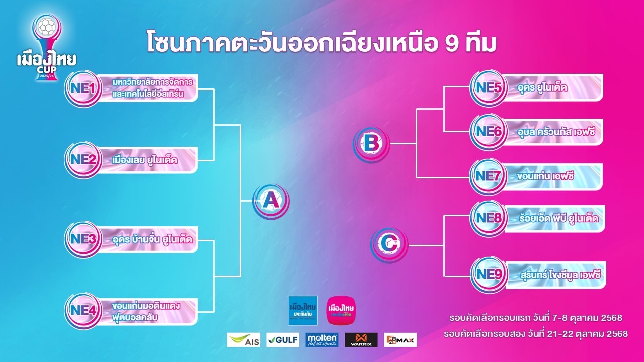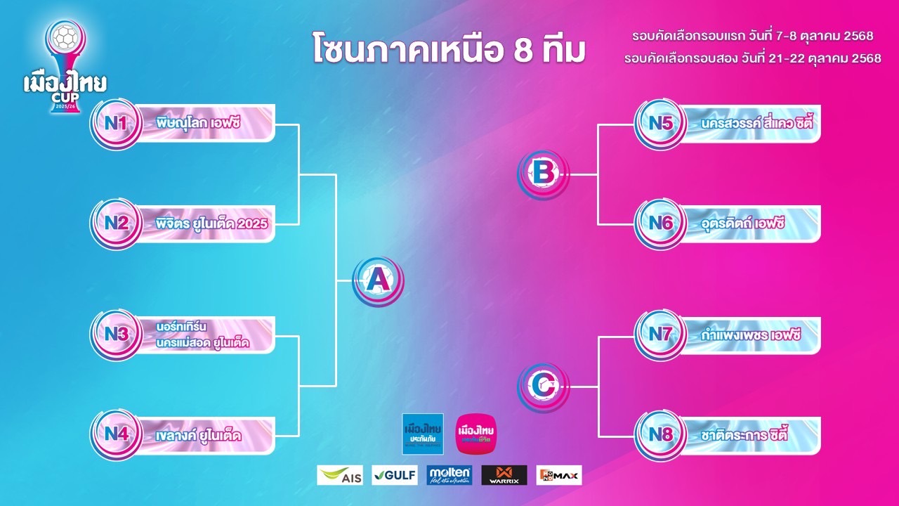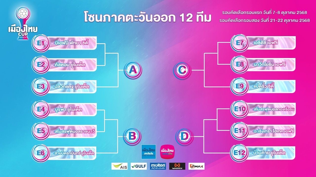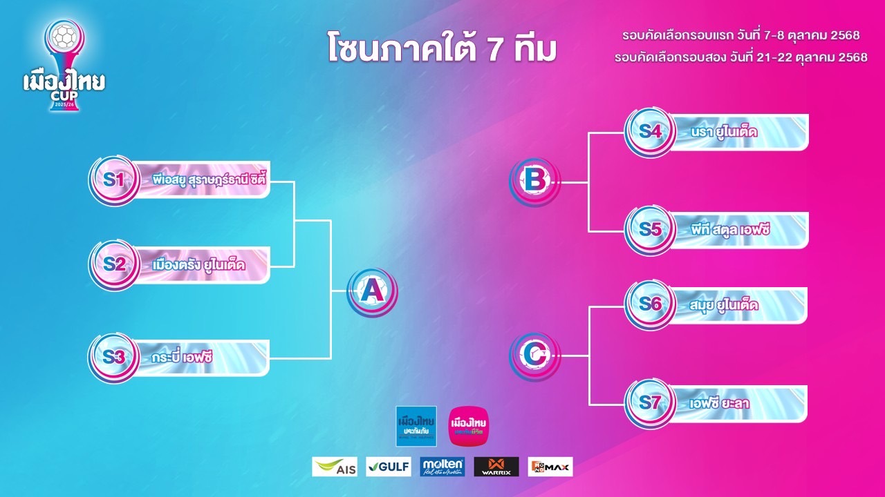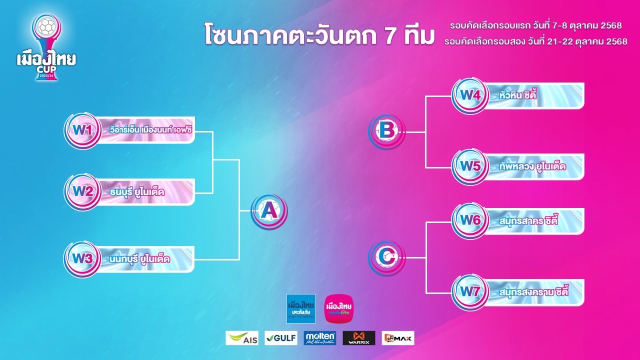 แบโผ สลากการแข่งขัน “เมืองไทย คัพ” ฤดูกาล 2025/26 รอบคัดเลือก