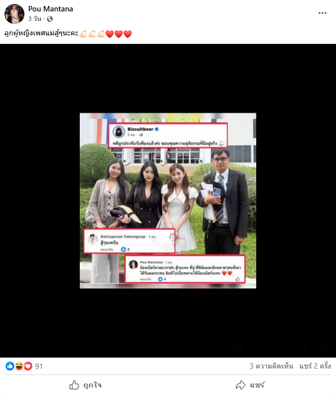 มีผู้หญิงธรรมดาคนหนึ่ง นามว่า “ปู” ผู้หญิงเพศแม่ผู้มีน้ำใจ เธอเพียงแค่เข้าไปคอมเมนต์ให้กำลังใจน้องคนหนึ่งด้วยคำสั้นๆ ว่า “สู้ๆ”