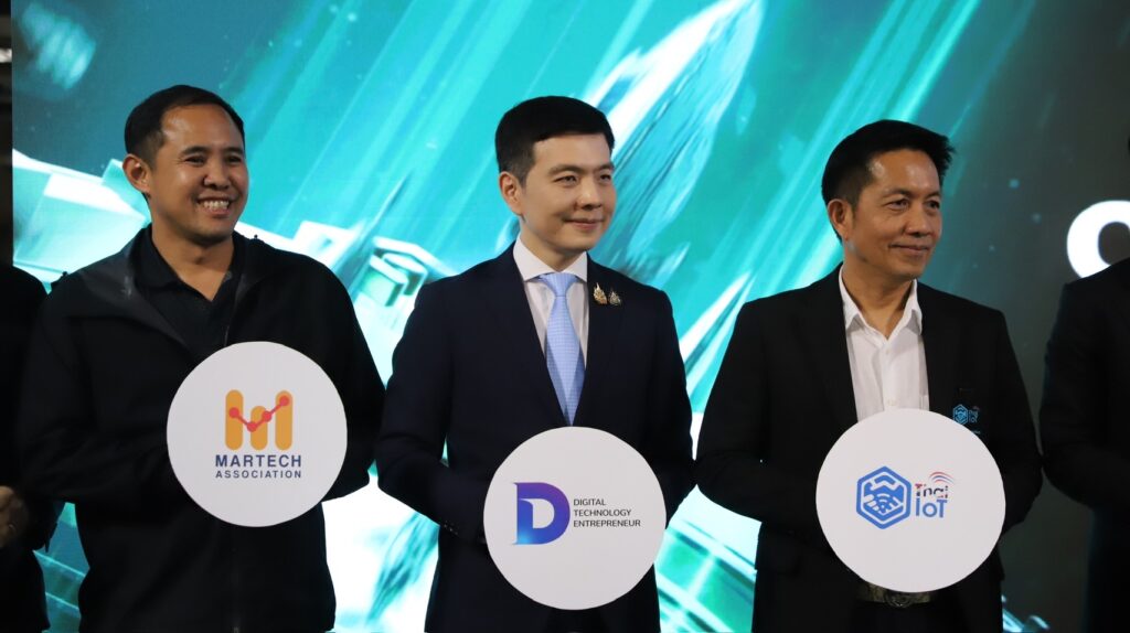 ต่อด้วย คุณณฐัวุฒิ ปิ่นทองคำ อุปนายกสมาคมการค้าผู้ประกอบการเทคโนโลยีดิจิทัล กล่าวว่า ในส่วนของบทบาทหน้าที่ของทั้ง 12 สมาคม ที่มีจุดหมายปลายทางเดียวกัน ต้องการที่จะสร้างและพัฒนาประเทศให้นำไปสู่ความยั่งยืน วันนี้ เรากำลังพูดถึงเรื่องของการเปลี่ยนแปลง ทั้งหมดที่กล่าวมานี้ เราจะไม่สามารถเติบโตไปข้างหน้าได้เลยถ้าไม่ได้ความร่วมมือจากทั้ง 12 สมาคม ทั้งภาครัฐและภาคเอกชน หรือเพิ่มศักยภาพในการแข่งขันตรงนี้ให้ได้ และอยากจะเชิญชวน ผู้ที่สนใจในเรื่องของเทคโนโลยีและผู้ประกอบการหลายๆหน่วยงานหลายๆบริษัทอยากให้มาเยี่ยมชม งานในครั้งนี้ เพราะคิดว่ามีประโยชน์และจะสามารถเสริม ศักยภาพให้กับผู้ที่ได้เข้ามาชมในงานครั้งนี้ด้วย
