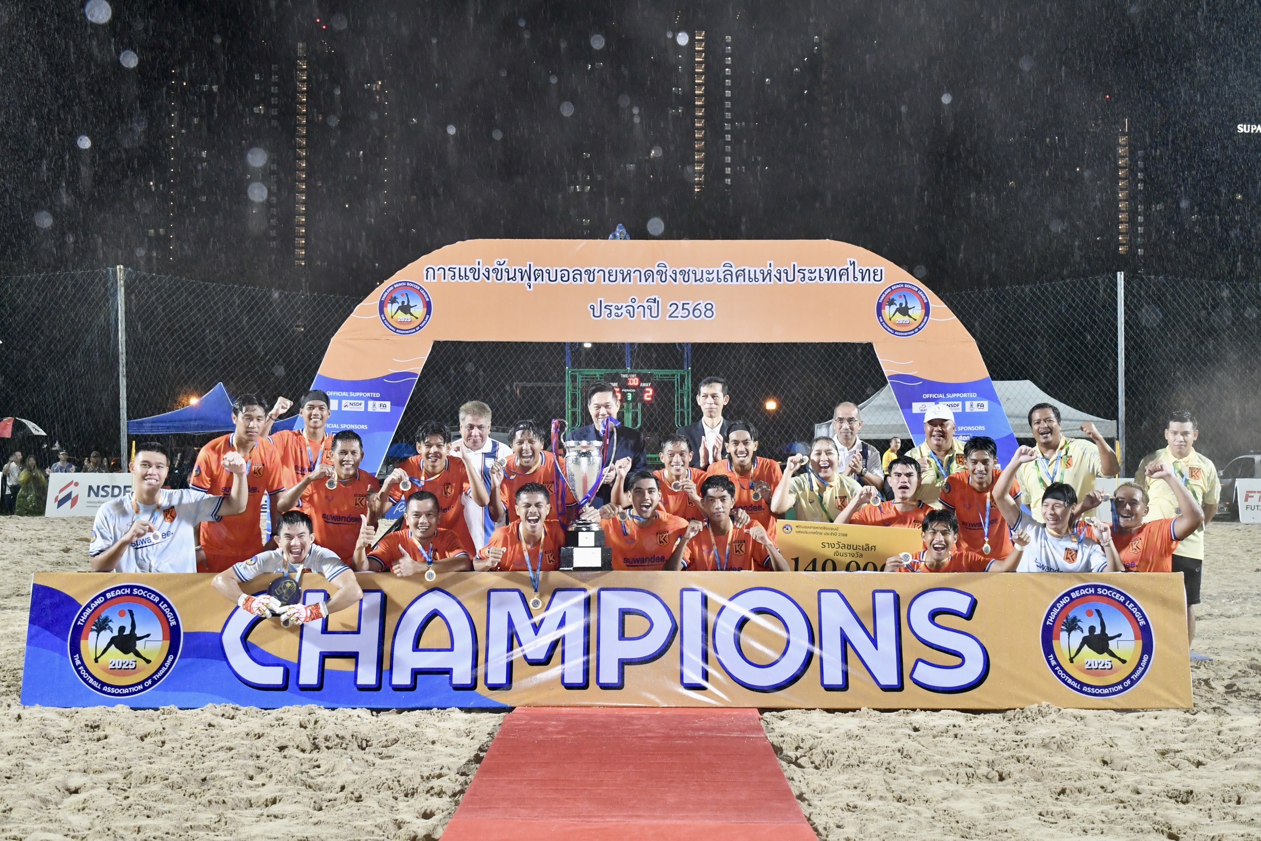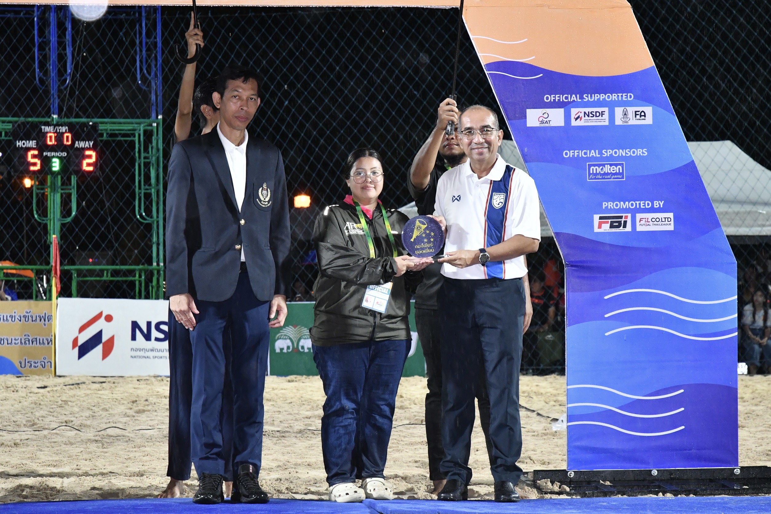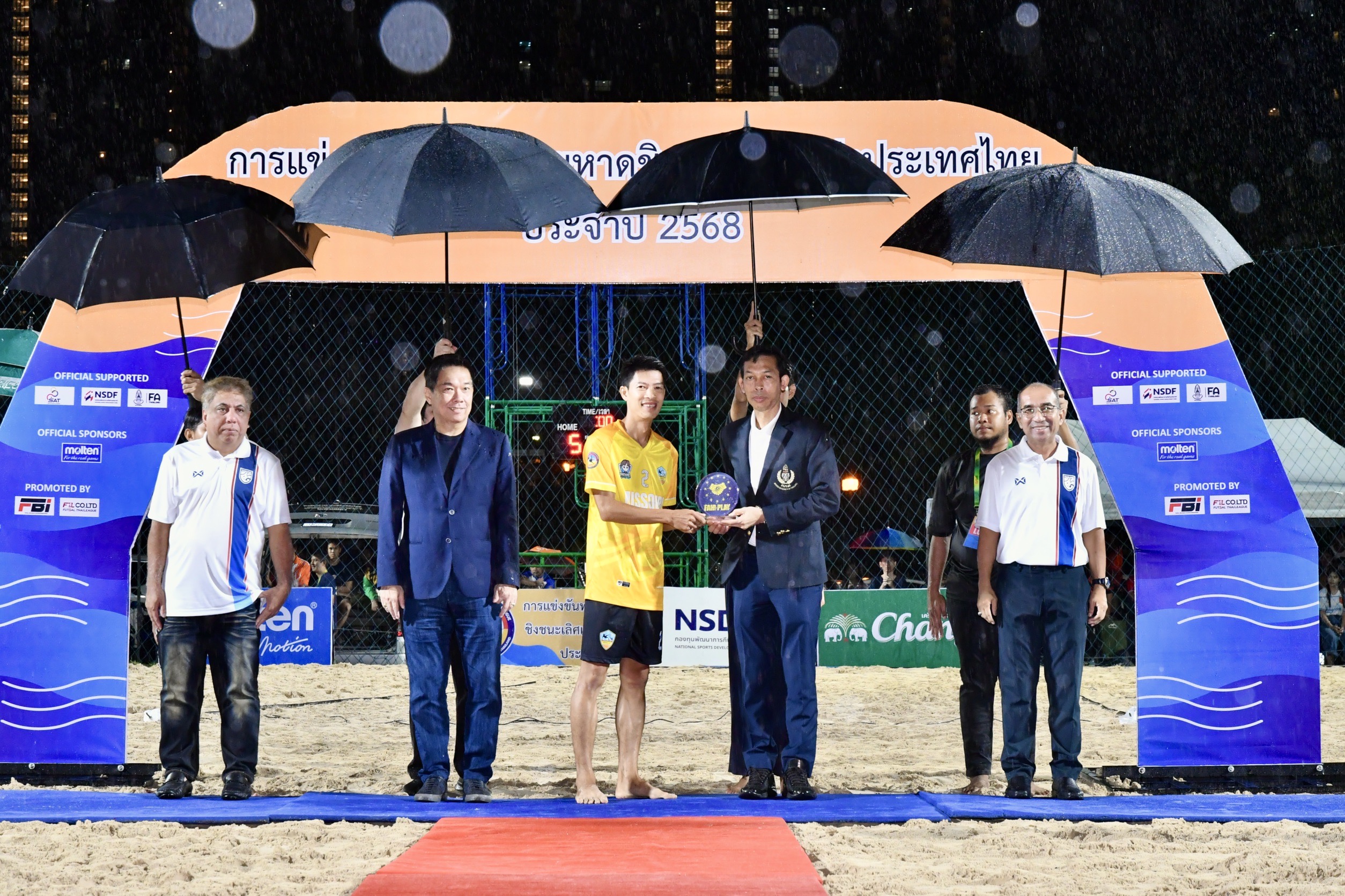 วันที่ 27 กันยายน 2568 ณ สนามฟุตบอลชายหาด การกีฬาแห่งประเทศไทย สมาคมกีฬาฟุตบอลแห่งประเทศไทย ในพระบรมราชูปถัมภ์ จัดพิธีมอบถ้วยรางวัลชนะเลิศ การแข่งขันฟุตบอลชายหาดชิงชนะเลิศแห่งประเทศไทย 2568