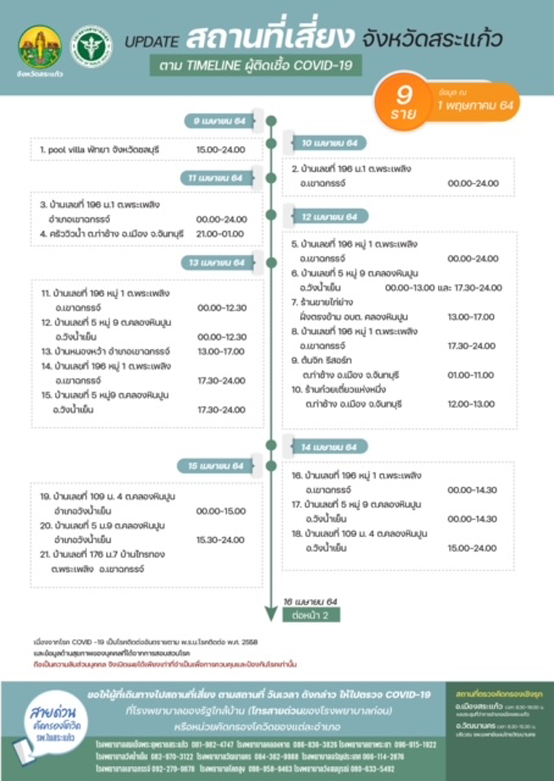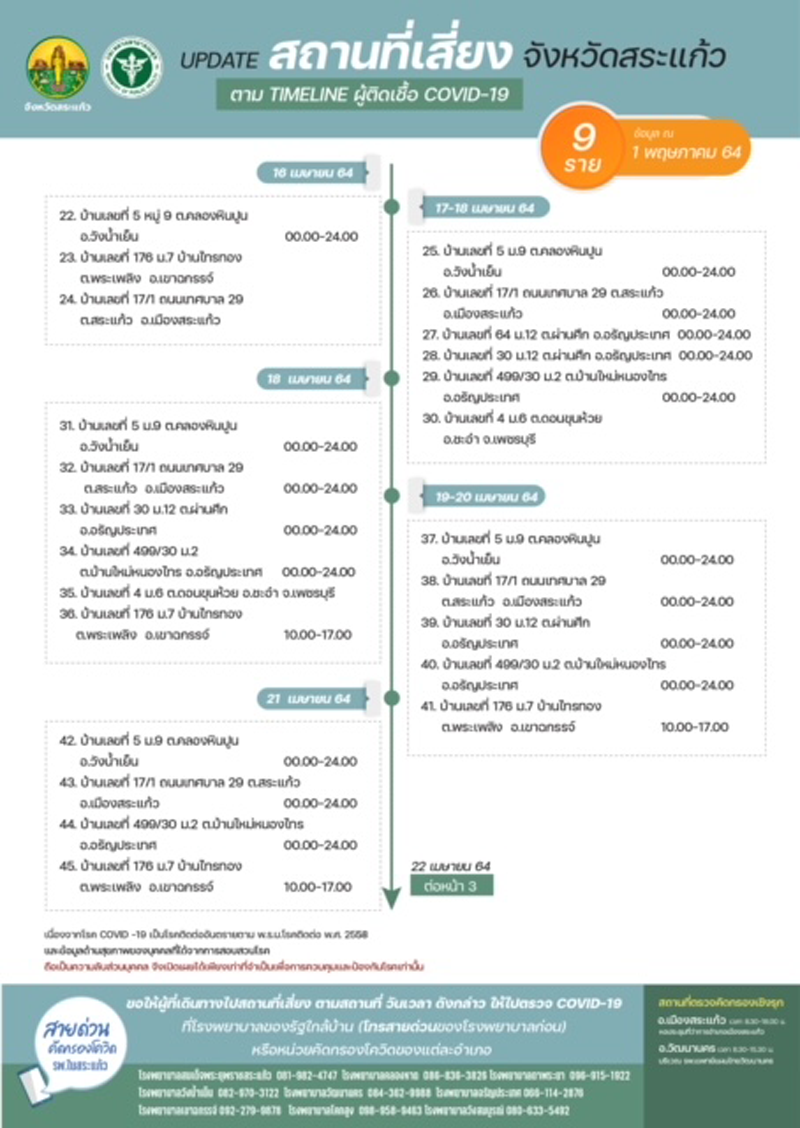 สระแก้วติดเชื้อ 9 ราย ติดในครอบครัวผู้ใกล้ชิด