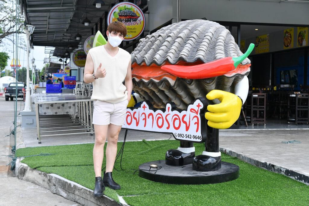 หลังจากอิ่มเพลินๆ กับเมนูซีฟู้ดเรียบร้อยแล้ว “หนุ่มแม็ก” ก็สวมแมสก์ต่อทันที ก่อนที่จะเดินไปถ่ายภาพเช็คอินกับหอยยักษ์สัญลักษณ์ยอดฮิตของร้าน “หอยจ๋า อร่อยจี๋” พร้อมเอ่ยปากชมไม่ขาดว่า “อาหารทะเลร้านนี้ สด อร่อยมาก ที่สำคัญน้ำจิ้ม 3 แบบ ร้านนี้เด็ด ใครได้ลองแล้วจะติดใจ” เพราะฉะนั้นในช่วงโควิด-19 ที่ใครหลายคนกังวลไม่กล้าออกจากบ้าน สามารถสั่งอาหารแบบเดลิเวอรี่ได้ทาง Line : @Hoijar, Line man, Grab, Robinhood, Gojek หรือ 092-5429646 และFacebook : หอยจ๋า อร่อยจี๋ ขอบอกว่ารสชาติดีเหมือนทานที่ร้านเลยจ้า