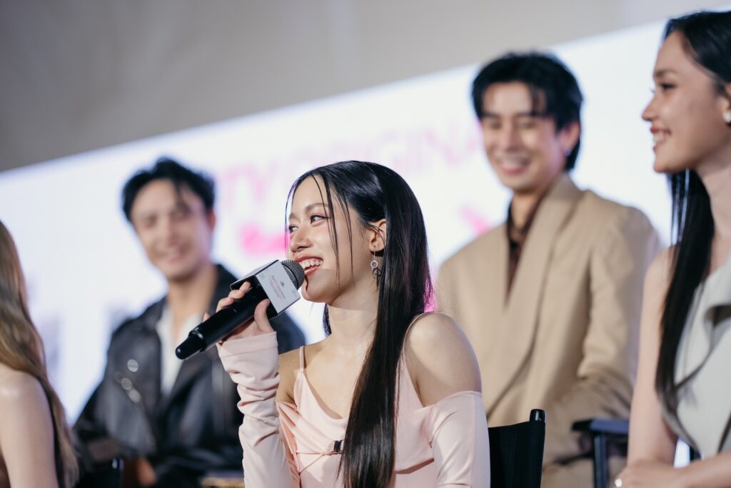 จากนั้นพิธีกรก็ได้เชิญนักแสดง ผู้กำกับ และโปรดิวเซอร์ จากซีรีส์ LOVE DESIGN รับ (รัก) ออกแบบ ขึ้นมาพูดคุยกับเราบนเวที นำทีมโดย “เก้า สุภัสสรา ธนชาต” , “เจนเย่ เมธิกา จีรนรภัทร”, “แยม มธิรา ตันติประสุต” , “เฟรนด์ ทอฝัน ทวีมา” , “ปาล์ม ปารมี เหลืองนฤมิตชัย” ,“โซ ทาเคอิ” ,“มิล ศรุต นวประดิษฐกุล” , “ฮิม เอลิชา รุ่งเรืองศิริ” พร้อมทั้ง “ ฟิวส์ กิตติศักดิ์ ชีวาสัจจาสกุล” ผู้กำกับ และ “เจมส์ ธนดล นวลสุทธิ์” Producer ขึ้นบนเวที