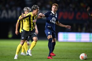 นาทีที่ 39 ผู้มาเยือนได้เปิดเกมสวนกลับเร็ว เจริญศักดิ์ วงษ์กรณ์ กระชากบอลขึ้นเกมทางขวาเข้าไปในกรอบเขตโทษ จ่ายยัดเข้ามาให้ กาคุโตะ โนสึดะ ได้ยิงจ่อ ๆ นีล เอเธอร์ริดจ์ ตบบอลออกมาจากเส้น กาคุโตะ โนสึดะ วิ่งมาซ้ำดาบสอง เข้าประตูไป แต่ทว่าผู้ตัดสินได้รับการแจ้งเตือนจากห้องควบคุม VAR ว่า เจริญศักดิ์ วงษ์กรณ์ อยู่ในตำแหน่งล้ำหน้าไปก่อนแล้ว ทำให้จังหวะนี้ไม่เป็นประตู