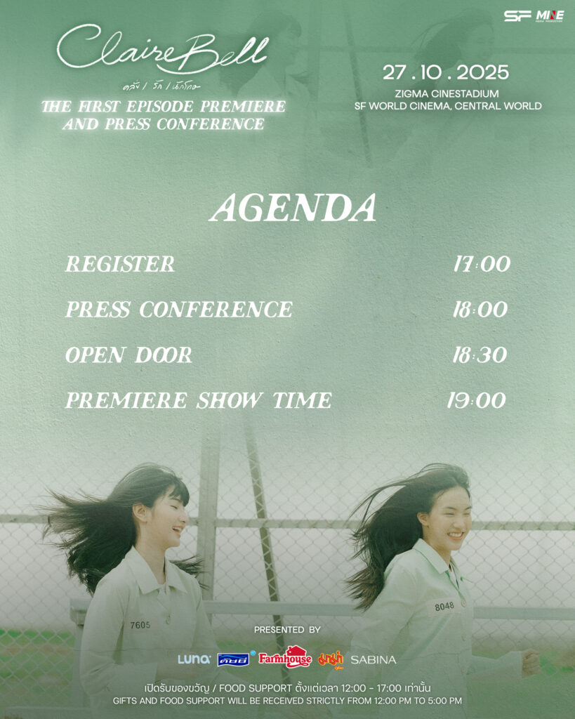 ทำถึงมากเวอร์!! เมื่อค่าย Mine Medie Production โดย 2 ผู้จัดคุณภาพ ใหม่-ดาวิกา โฮร์เน่ และ เต๋อ-ฉันทวิชช์ ธนะเสวี เตรียมเสิร์ฟโมเมนต์สุดพิเศษจัดงาน “CLAIREBELL คลั่ง/รัก/นักโทษ THE FIRST EPISODE PREMIERE AND PRESS CONFERENCE“ ชวนแฟนๆ ดู EP แรกอินและฟินก่อนใคร โดยเป็นการบอกเล่าเรื่องราวความรักของแคลร์และเบล ที่กำลังก่อตัวขึ้นหลังกำแพงรั้วสูงใหญ่ที่กักขังทั้งคู่เอาไว้ ทั้งสองต้องต่อสู้ดิ้นรนจากอำนาจมืดที่กลายมาเป็นตัวกำหนดชะตาชีวิตของคนทั้งคู่เอาไว้ พบกับนักแสดงนำ เมเบิ้ล-สิริวลี สิริวิบูลย์, แป้งจี่-ปภาวรินท์ สวัสดิเวช ที่โคจรมาประกบคู่สาดเคมีความฟินให้ได้อินทุกมิติอารมณ์ พร้อมด้วยทีมนักแสดงที่มาร่วมเสริมทัพความสนุก แองจี้ ภัณฑิรา, อัตต้า นัชชา, ซานต้า วัชรวิศน์, บาเบล จิรกิตติ์ ซึ่งจะจัดขึ้นในวันจันทร์ที่ 27 ตุลาคม 2568 ตั้งแต่เวลา 19.00 น. เป็นต้นไป ณ โรงภาพยนตร์ ZIGMA CINESTADIUM SF WORLD CINEMA ชั้น 9 ศูนย์การค้าเซ็นทรัลเวิล์ด