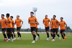 การฝึกซ้อมครั้งนี้ “มาซาทาดะ อิชิอิ” หัวหน้าผู้ฝึกสอน นำทัพติวเข้มนักกีฬาทั้ง 23 คน โดยเน้นไปที่การใส่รายละเอียดทั้งเกมรุกและเกมรับ รวมถึงลูกตั้งเตะต่างๆ ซึ่งใช้เวลา 1 ชั่วโมง