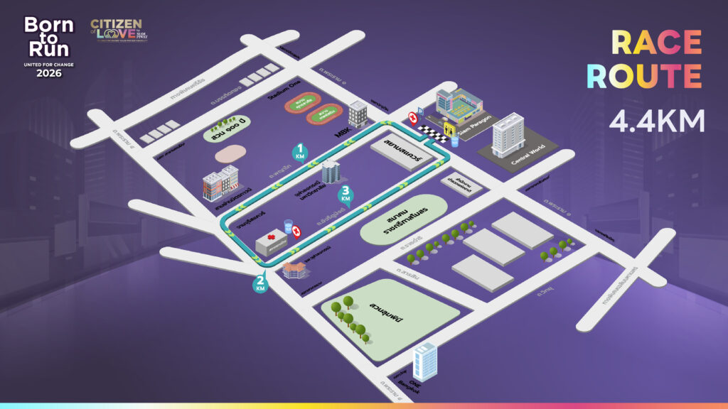 กิจกรรมวิ่งการกุศล “Citizen of Love : Born to Run 2026 United for Change” จะจัดขึ้นในวันอาทิตย์ที่ 18 มกราคม 2569 ณ สยามพารากอน แบ่งระยะการแข่งขันออกเป็น 2 ประเภท ได้แก่ มินิมาราธอน 10.5 กิโลเมตร และฟันรัน 4.4 กิโลเมตร เปิดรับสมัครผู้เข้าร่วมกิจกรรมผ่านทางออนไลน์ https://thai.fit/c/BTR2026 ตั้งแต่วันนี้เป็นต้นไป ค่าสมัครระยะมินิมาราธอน 899 บาท ระยะฟันรัน 799 บาท พิเศษสำหรับสมาชิก ONESIAM SuperApp สามารถรับโค้ดส่วนลด 100 บาท เพื่อสมัครร่วมกิจกรรมราคาพิเศษได้ทุกระยะ โดยผู้ร่วมกิจกรรมจะได้รับเสื้อวิ่งที่ระลึกสุดพิเศษออกแบบโดยศิลปินสตรีทอาร์ต และป็อปอาร์ต BENZILLA เจ้าของคาแรคเตอร์สามตายอดฮิต และผู้ร่วมกิจกรรมที่วิ่งเข้าเส้นชัยจะได้รับเหรียญรางวัลรักษ์โลกสุดพิเศษออกแบบโดย BENZILLA นอกจากจะดีไซน์น่ารักเหมาะแก่การเก็บสะสมแล้ว ยังสามารถนำมาใช้ประโยชน์เป็นที่เปิดขวดน้ำได้ ตัวเหรียญยังทำมาจากฝาขวดน้ำพลาสติกที่ได้มาจากการคัดแยกขยะภายใต้โครงการ Journey to Zero Waste ของกลุ่มบริษัทสยามพิวรรธน์ ส่งต่อให้ QUALY DESIGN แบรนด์ผลิตภัณฑ์ไลฟสไตล์รักษ์โลกเป็นผู้ผลิต