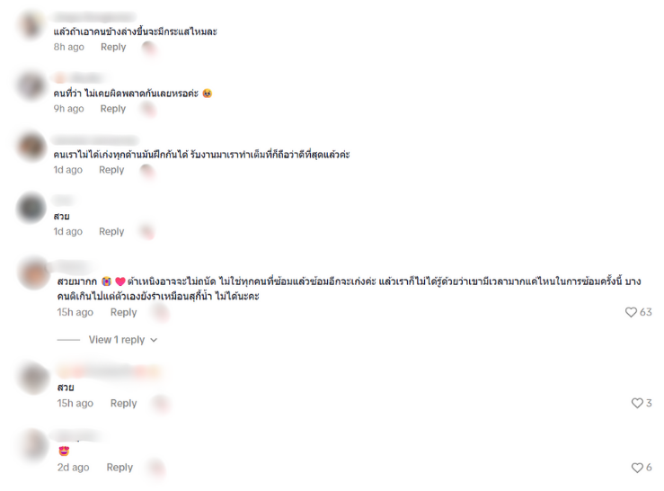 ซึ่งก็ได้มีชาวเน็ตหลายคนออกมาคอมเมนต์ปกป้อง อาทิ คนเราไม่ได้เก่งทุกด้านมันฝึกกันได้ รับงานมาเราทำเต็มที่ก็ถือว่าดีที่สุดแล้วค่ะ, คนที่ว่า ไม่เคยผิดพลาดกันเลยหรอค่ะ, สวยมากก 😭♥️ต้าเหนิงอาจจะไม่ถนัด ไม่ใช่ทุกคนที่ซ้อมแล้วซ้อมอีกจะเก่งค่ะ แล้วเราก็ไม่ได้รู้ด้วยว่าเขามีเวลามากแค่ไหนในการซ้อมครั้งนี้ บางคนติเกินไปแต่ตัวเองยังรำเหมือนสุกี้น้ำ ไม่ได้นะคะ เป็นต้น