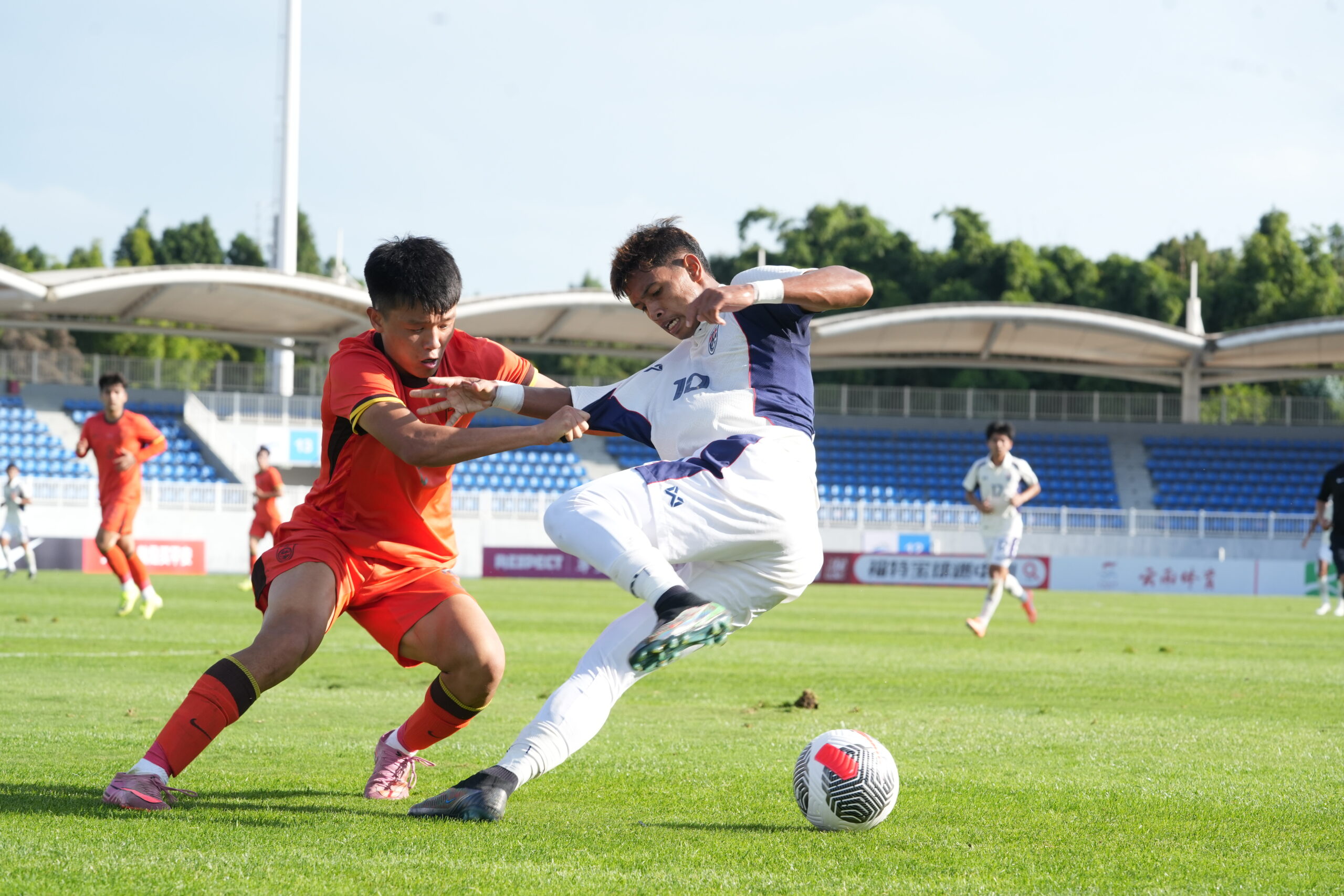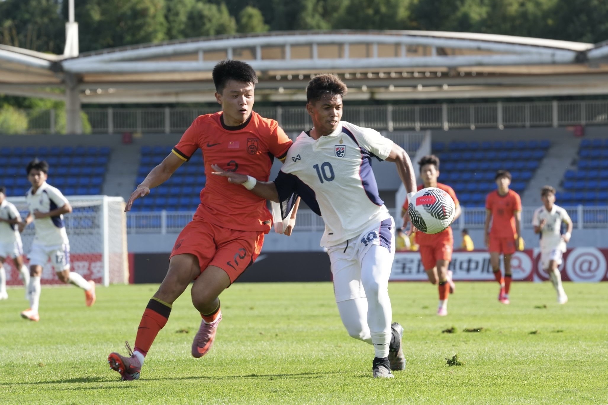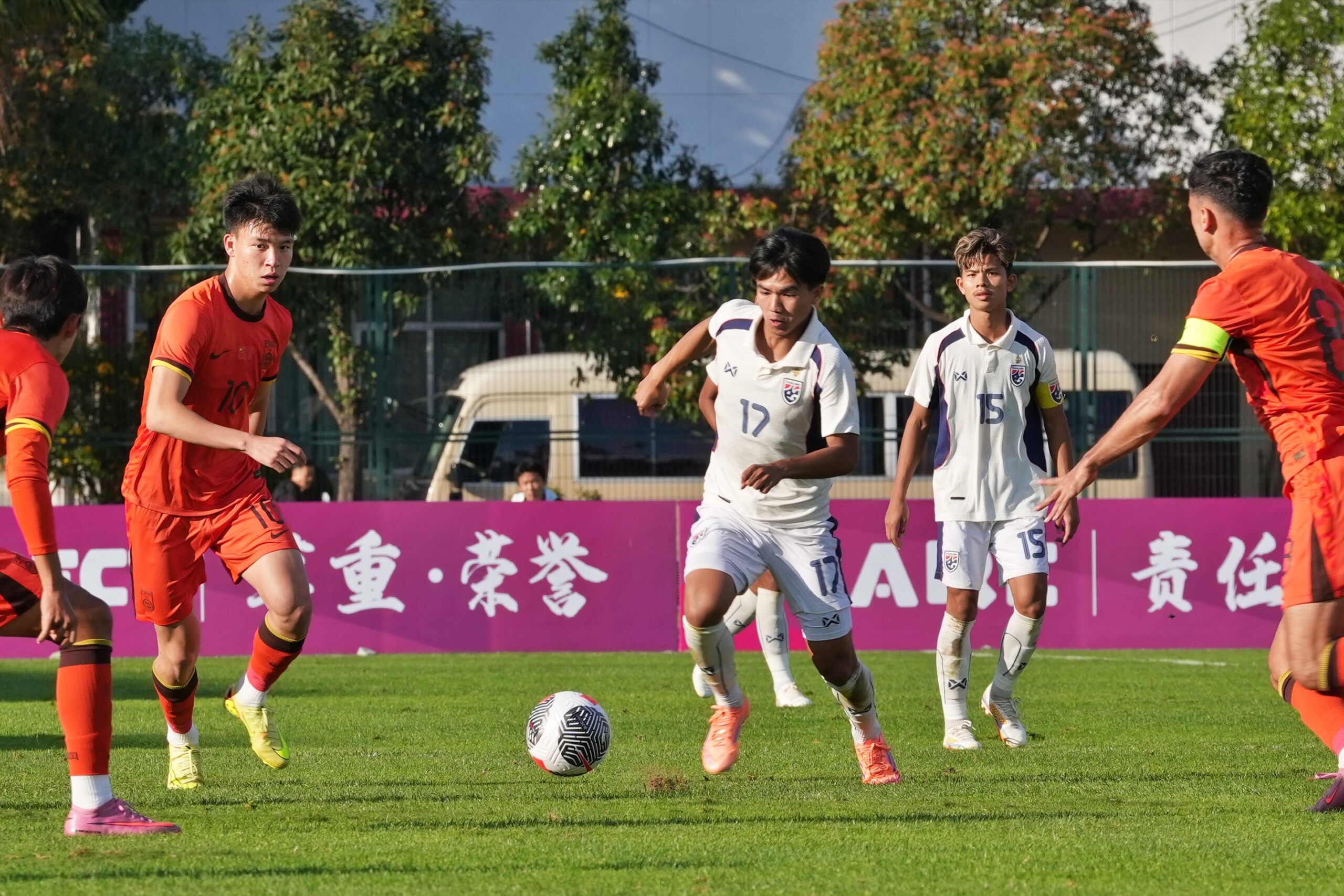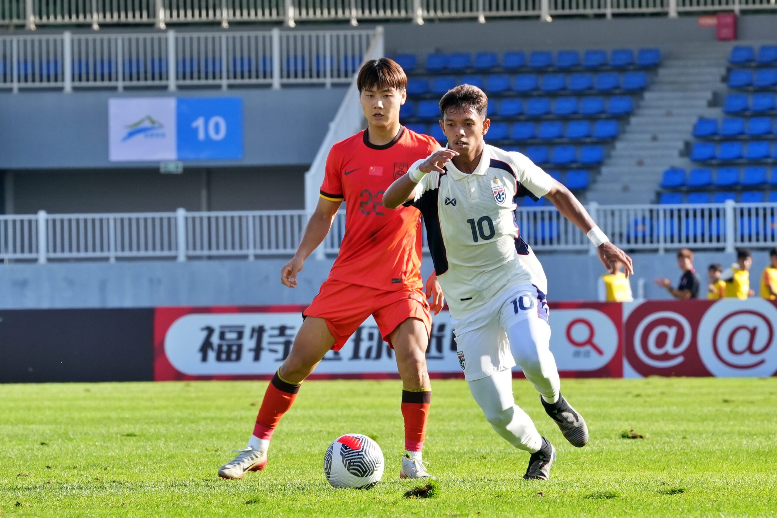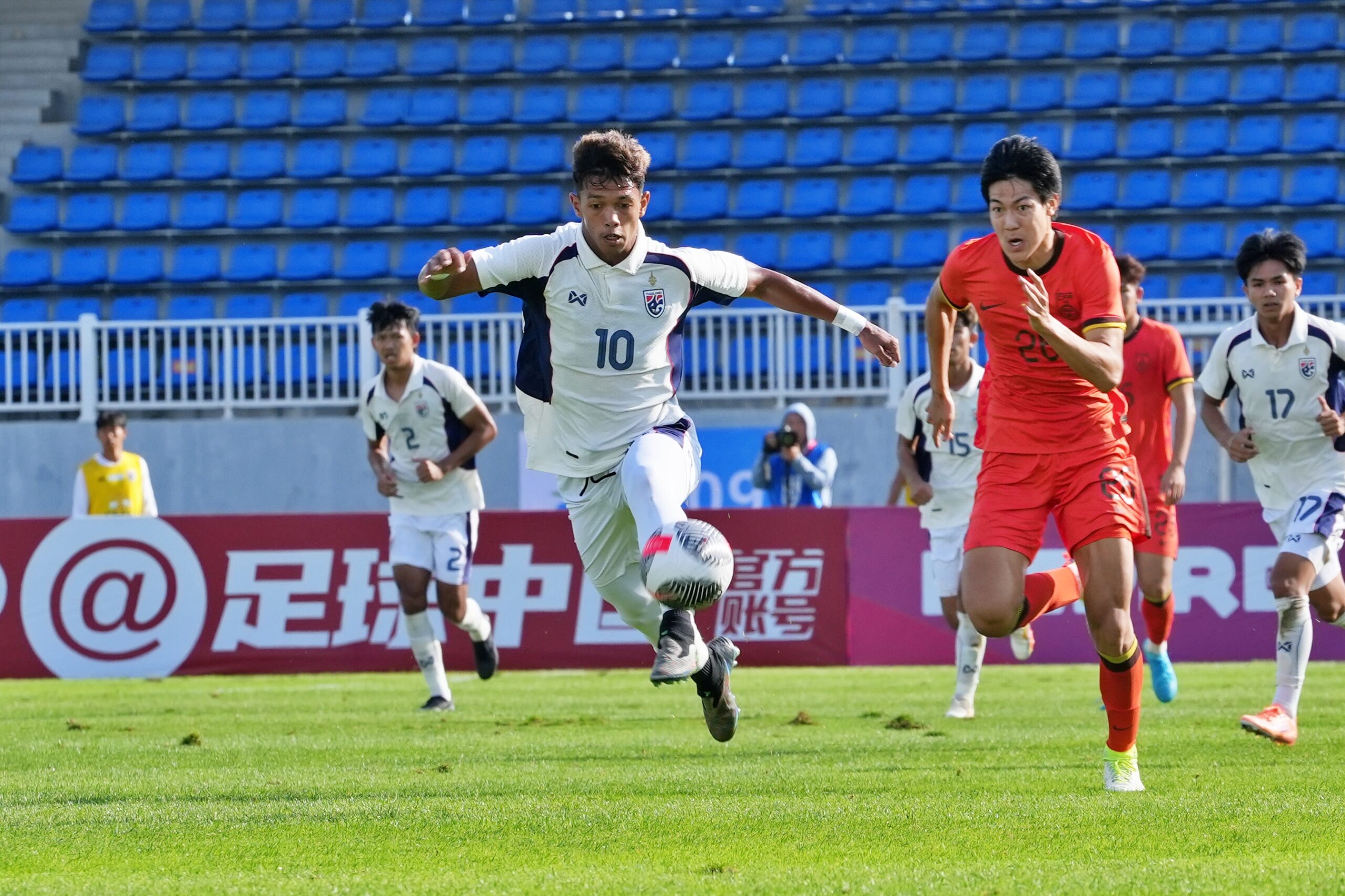 ต่อมานาทีที่ 28 ไทย ได้จังหวะลุ้นยิงประตูต่อเนื่อง อิคลาส สันหรน พาบอลขึ้นมาทางฝั่งซ้าย ก่อนจ่ายมาให้ ยศกร บูรพา ได้ยิงหน้ากรอบเขตโทษบอลไปแฉลบผู้เล่นจีนออกหลังไป