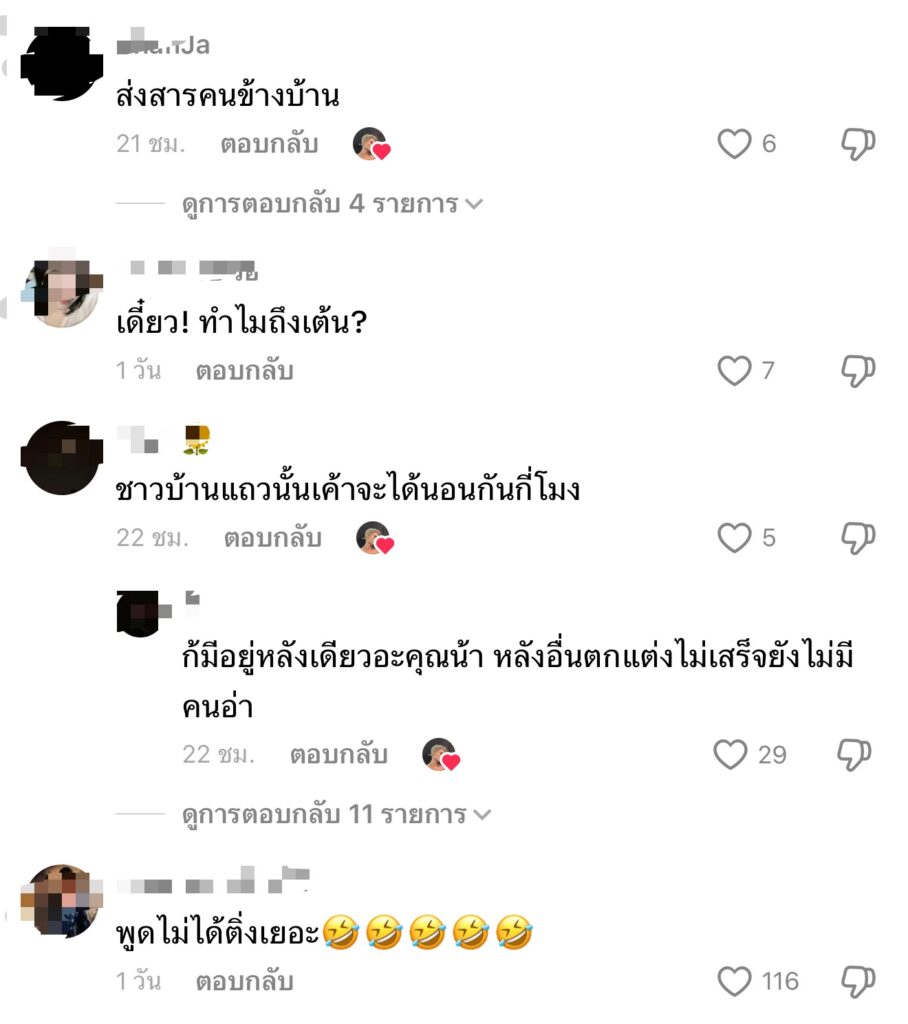 โดยเข้ามาคอมเมนต์แซะอาทิ “เพื่อนบ้านโครตใจดี , เพื่อนบ้านว่าไง ตี3 อะ ละเสียงไม่ดังรึคะ , เพื่อนบ้านเจนนี่ เป็นไงบ้าง , ขอถามคะไม่เสียงดังรบรวนเพื่อนบ้านข้างๆเหรอคะ , ส่งสารคนข้างบ้าน , สงสารคนที่ยุในหมู่บ้านนี้จัง เกรงใจกี่โมง”