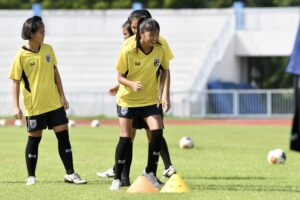 การฝึกซ้อมครั้งนี้ “โค้ชมิ่ม” ธิดารัตน์ วิวาสุขุ หัวหน้าผู้ฝึกสอน นำทัพนักเตะทั้ง 23 คนลงติวเข้ม โดยเน้นไปที่การทบทวนแทคติกทั้งเกมรุกและเกมรับที่จะใช้ในเกมวันพรุ่งนี้ รวมถึงลูกตั้งเตะ ซึ่งใช้เวลา 1 ชั่วโมง
