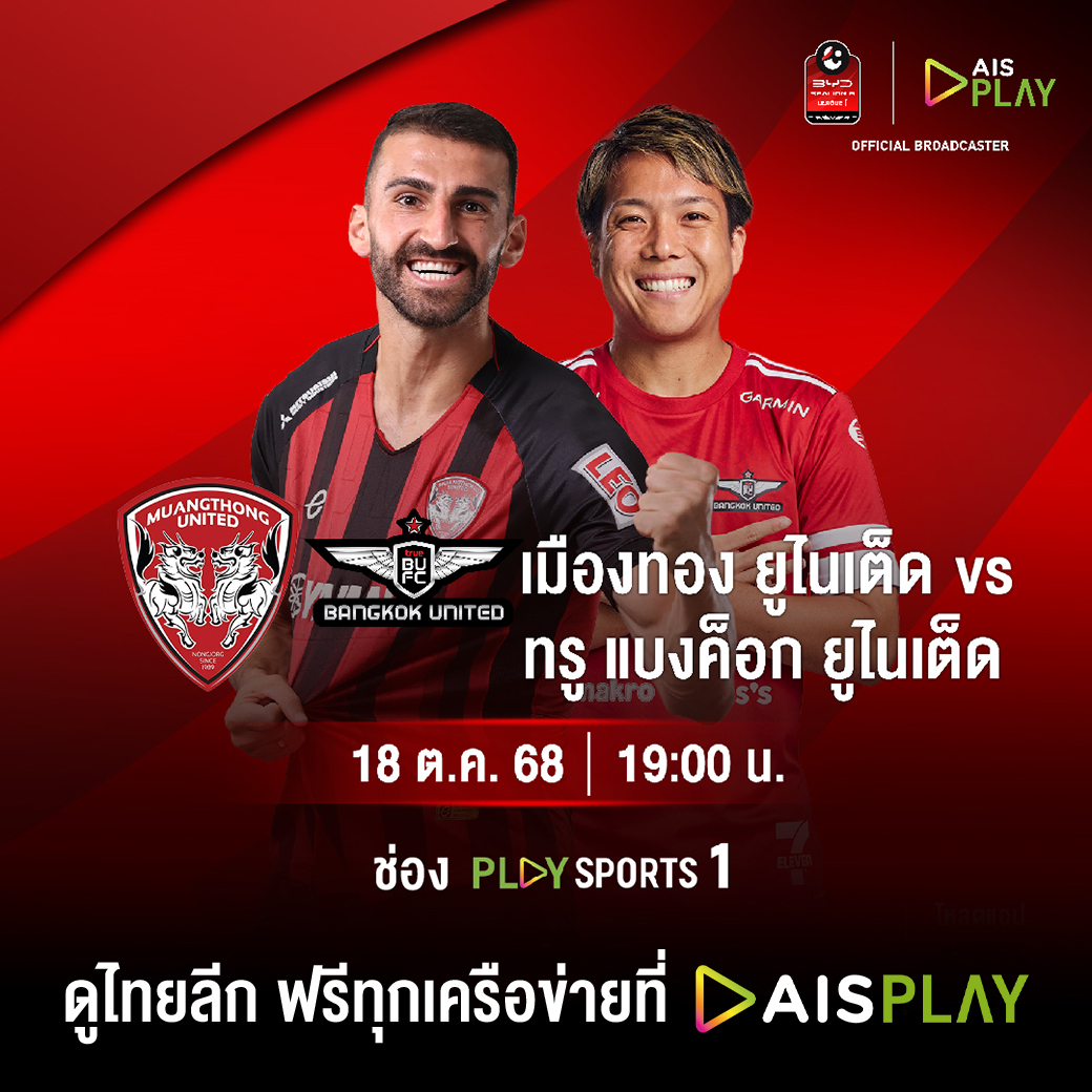 19.00 น. เมืองทอง ยูไนเต็ด พบ ทรู แบงค็อก ยูไนเต็ด : PLAY SPORTS1