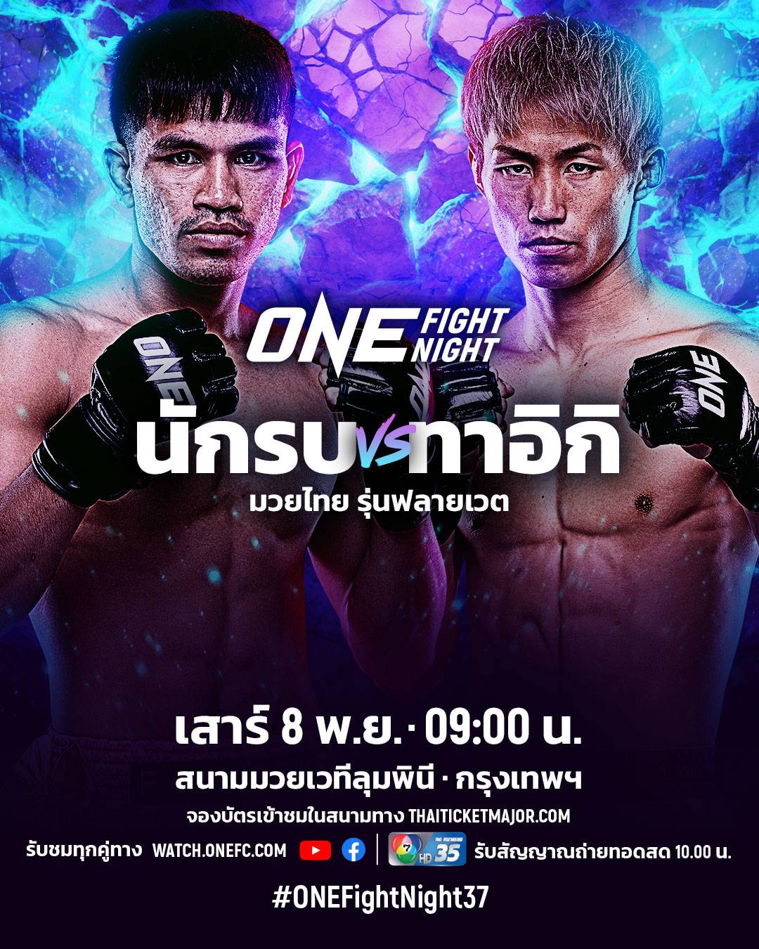 “ทาอิกิ นาอิโตะ” นักชกฝีมือจัดจ้าน วัย 29 ปี จากญี่ปุ่น ได้คิวเสียบแทน “จาค็อบ สมิธ” ที่ถอนตัวไปเนื่องจากบาดเจ็บ โดยจะวัดแกร่งกับ “นักรบ แฟร์เท็กซ์” จอมบู๊สายแข็ง วัย 26 ปี จากสุรินทร์ ในกติกามวยไทย รุ่นฟลายเวต (125-135 ป.) ในศึก ONE Fight Night 37 ถ่ายทอดสดจากเวทีมวยลุมพินี (รามอินทรา) ช่วงไพรม์ไทม์อเมริกา ตรงกับเวลา 09:00 น. วันเสาร์ที่ 8 พ.ย. 68