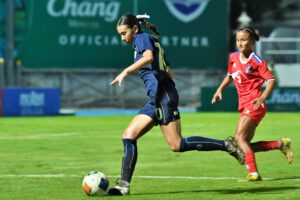 ทดเจ็บ จากลูกเตะมุม พัทธมณฑ์ แสงตา โหม่งเข้าไปให้ ทีมชาติไทย U17 นำห่าง เนปาล เป็น 12-0