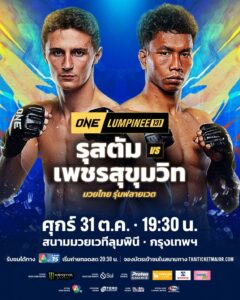 เผยโฉมคู่เอกภาคอินเตอร์ของศึก ONE ลุมพินี 131 ที่จะถ่ายทอดสดไปยัง 195 ประเทศทั่วโลก จากสนามมวยเวทีลุมพินี (รามอินทรา) ในวันศุกร์ที่ 31 ต.ค.นี้ โดยประกบ “รุสตัม ยูนูซอฟ” ดาวจรัสแสงไร้พ่าย วัย 18 ปี จากรัสเซีย มาปะทะกับ “เพชรสุขุมวิท ต้อมทุ่งใหญ่” จอมบู๊กล้ามแน่น วัย 27 ปี จากนครศรีธรรมราช ในกติกามวยไทย รุ่นฟลายเวต (125-135 ป.)
