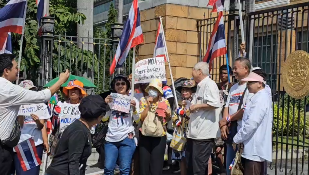 คปท. รวมตัวหน้ากระทรวงการต่างประเทศ ยื่นหนังสือถึง รมว.ต่างประเทศ เรียกร้อง ยกเลิก MOU 43-44 และเลื่อนประชุม JBC ไทย-กัมพูชา เหตุมองว่ากัมพูชาละเมิดข้อตกลงซ้ำซาก