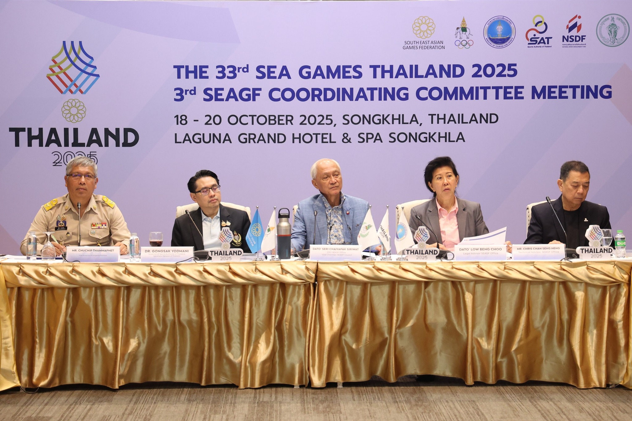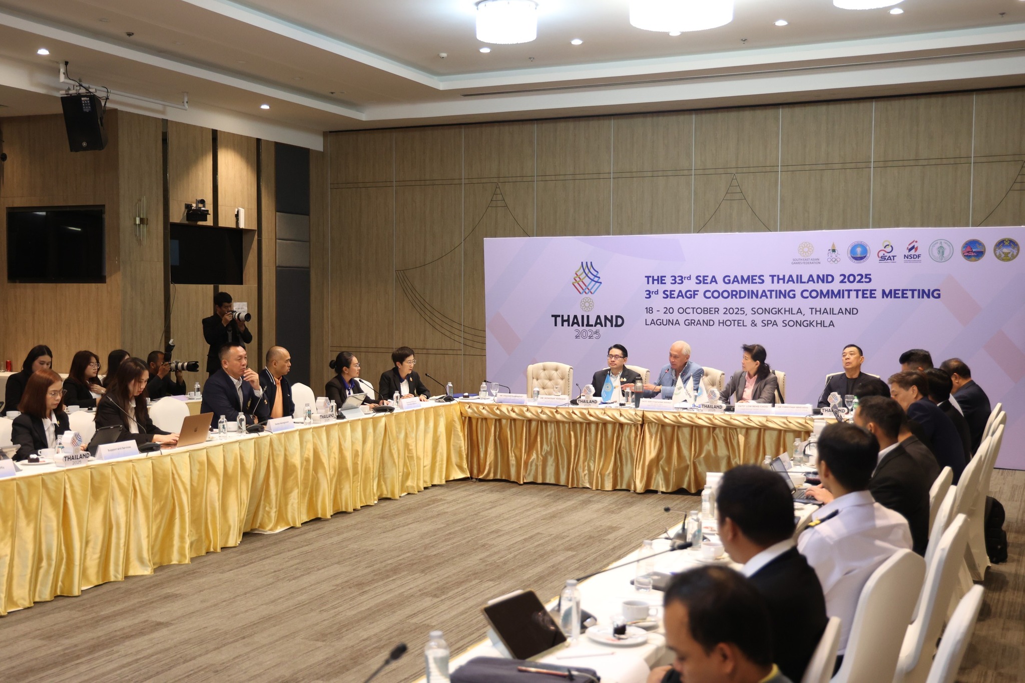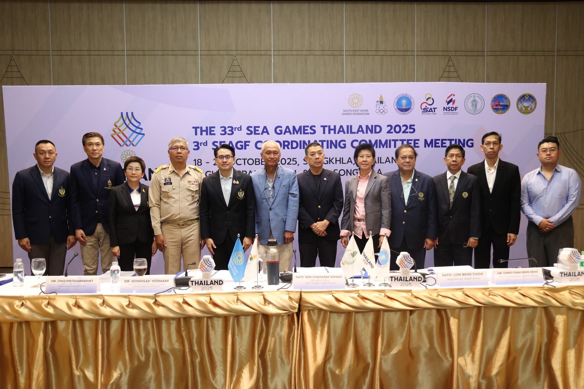 ดร.ก้องศักด ยอดมณี ผู้ว่าการการกีฬาแห่งประเทศไทย (กกท.) พร้อมด้วย ดาโต๊ะซรี ชัยภักดิ์ ศิริวัฒน์ ซีอีโอสหพันธ์กีฬาซีเกมส์ และนายชูชีพ ธรรมเพชร รองผู้ว่าราชการจังหวัดสงขลา ร่วมกันเป็นประธานในการประชุมติดตามความก้าวหน้า การจัดการแข่งขันกีฬาซีเกมส์ ครั้งที่ 33 ของจังหวัดสงขลา ซึ่งเป็นการประชุมติดตาม ครั้งที่ 3 โดยมี ดาโต๊ะ โลว เป่ง ชู ที่ปรึกษานักกฎหมายซีเกมส์, คริส ชาน เซ้ง เฮง ที่ปรึกษาฝ่ายเทคนิคกีฬาซีเกมส์, พลเรือเอก อธินาถ ปะจายะกฤตย์ ผู้อำนวยการสหพันธ์กีฬาเอเชียตะวันออกเฉียงใต้, นางสาวศมจรส มิ่งคำเลิศ ผู้อำนวยการสำนักผู้ว่าการ และโฆษก กกท. , นายยุธยา จีนหีต ผู้อำนวยการฝ่ายพัฒนากีฬาเป็นเลิศ ร่วมประชุม ณ โรงแรมลากูน่า แกรนด์ โฮเทล แอนด์ สปา จังหวัดสงขลา เมื่อวันที่ 20 ตุลาคม 2568 ที่ผ่านมา