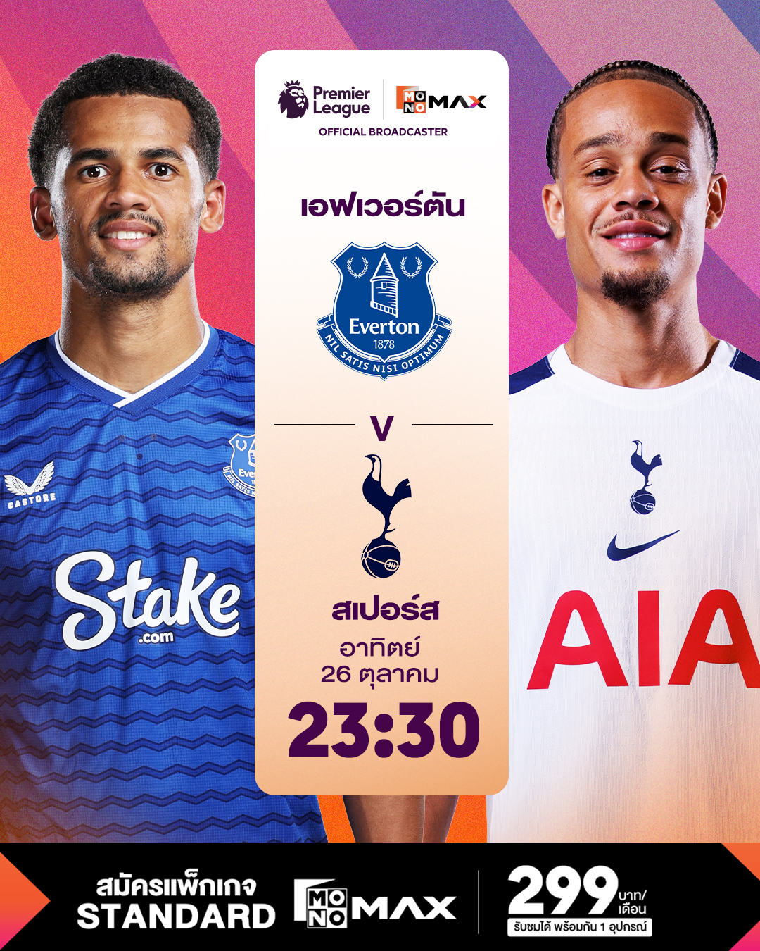 และปิดท้ายโปรแกรมสัปดาห์นี้ เวลา 23.30 น. “ทอฟฟี่สีน้ำเงิน” เอฟเวอร์ตัน เปิดบ้านรับการมาเยือนของ “ไก่เดือยทอง” ท็อตแน่ม ฮ็อตสเปอร์