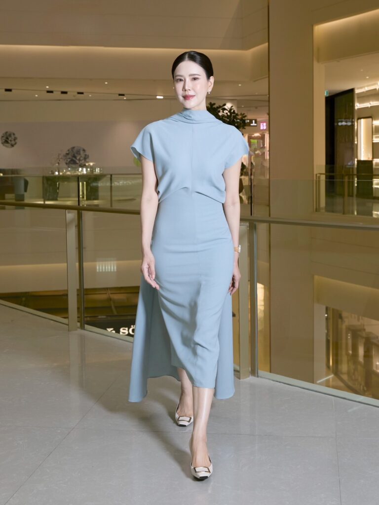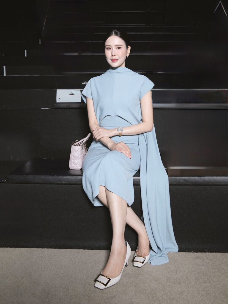 เดรสเรียบแต่เฉียบขาด ผมเกล้าแบบมีชั้นเชิง เมกอัพฟินิชเป๊ะไร้ที่ติ และอินเนอร์การวางตัวที่สง่างามที่สุด ทุกองค์ประกอบถูกแมตช์ออกมาได้ลงตัวระดับ Haute Couture