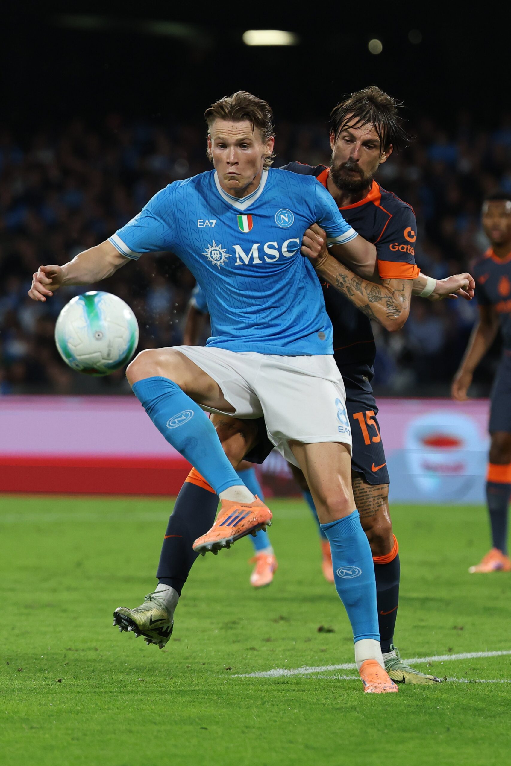 ครึ่งหลัง เปิดมาไม่นาน นาที 54 แม็คโทมิเนย์ ยิงอย่างเวอร์ นาโปลี นำห่าง 2-0 แต่นาที 59 งู ได้จุดโทษ ชัลฮาโนกลู ซัดโทษตีไข่แตก 2-1 ก่อนที่นาโปลีจะยิงปิดกล่อง นาที 67 อ็องกีสซ่า ยิงด้วยซ้ายหนีมือ ซอมเมอร์ หลังจากนั้น งู พยายามไล่ตีเสมอ แต่ไม่เกิดผล จบเกม 3-1