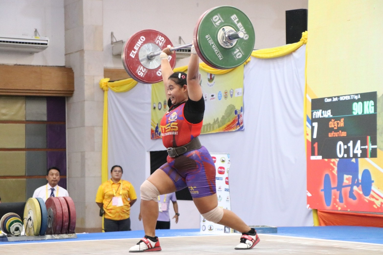 และรุ่น 77 กิโลกรัมหญิง กลุ่มเอ ณัฐวดี แก้วนาไสย จากโรงเรียนกีฬาจังหวัดนครศรีธรรมราช คว้าไปคนเดียว 3 เหรียญทอง จากท่าสแนทช์ 71 กิโลกรัม ท่าคลีนแอนด์เจิร์ก 90 กิโลกรัม และน้ำหนักรวม 161 กิโลกรัม ขณะที่ เกตุน์ชญา ทามิล จากโรงเรียนกีฬาจังหวัดชลบุรี เอ เก็บได้ 3 เหรียญเงิน จากท่าสแนทช์ 67 กิโลกรัม ท่าคลีนแอนด์เจิร์ก 84 กิโลกรัม และน้ำหนักรวม 151 กิโลกรัม และ สุรัตติกาญ พวงทอง จากโรงเรียนกีฬาจังหวัดนครสวรรค์ เอ ได้มา 3 เหรียญทองแดง จากท่าสแนทช์ 63 กิโลกรัม ท่าคลีนแอนด์เจิร์ก 83 กิโลกรัม และน้ำหนักรวม 146 กิโลกรัม