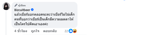 “แล้วเบียร์บอกตลอดนะคะว่าเบียร์ไม่ใช่เด็ก คนที่บอกว่าเบียร์เป็นเด็กมีความเมตตาให้ เป็นใครไปคิดเอาเองค่ะ” งานนี้ชาวเน็ตได้เข้ามาใส่ใจเป็นจำนวนมาก