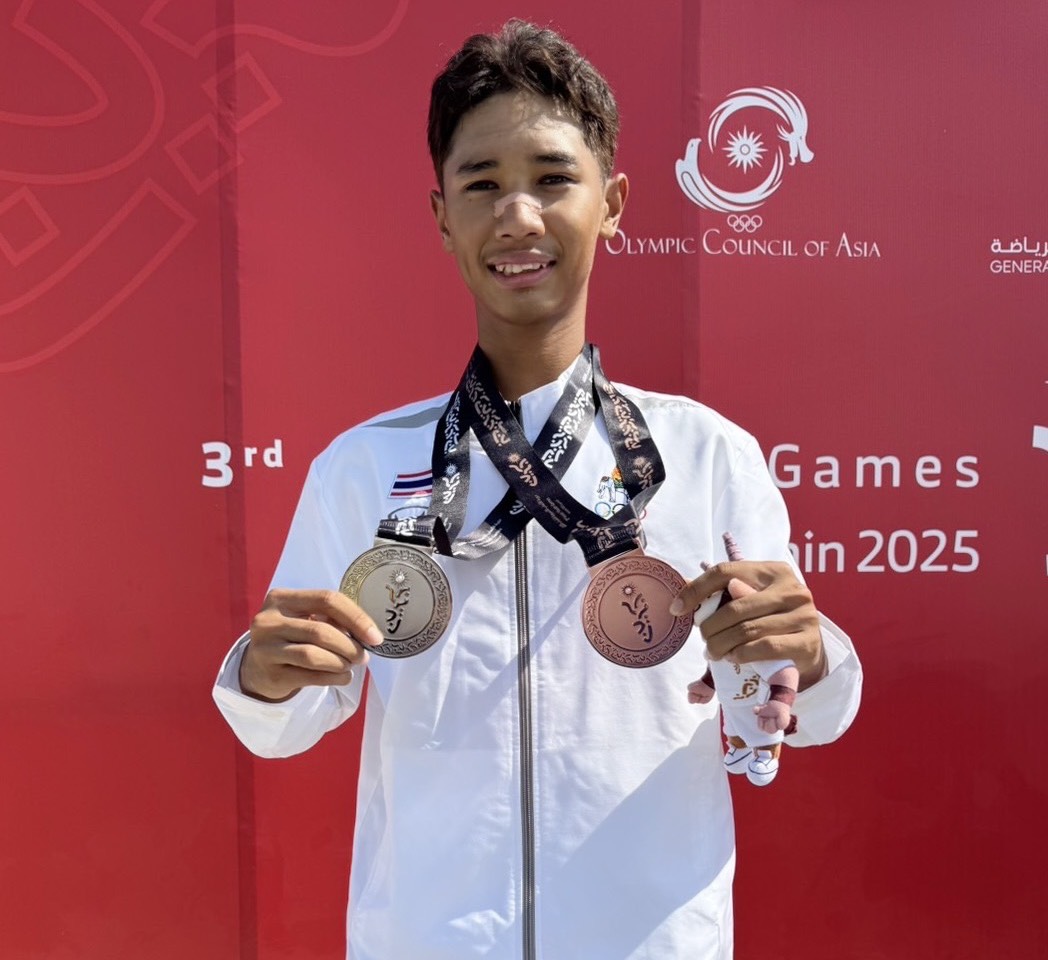 “สองล้อ” ผลงานทะลุเป้าในกีฬาเอเชี่ยน ยูธ เกมส์ ครั้งที่ 3 ที่ประเทศบาห์เรน เป็นชาติเดียวในอาเซียนที่ได้เหรียญรางวัล ขณะที่ชาติมหาอำนาจอย่าง ญี่ปุ่น, สหรัฐอาหรับเอมิเรตส์, อิหร่าน, อินเดีย, เกาหลีใต้ ไม่มีเหรียญติดมือกลับบ้าน “เสธ.หมึก” เผย “กฤตภาส หอมขจร มีโอกาสได้รับการคัดเลือกไปแข่งขันกีฬายูธ โอลิมปิกเกมส์ 2026 ที่กรุงดาการ์ ประเทศเซเนกัล จะเป็นเจ้าภาพในปีหน้า เนื่องจากมีคุณสมบัติตามหลักเกณฑ์ทุกประการ