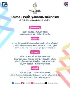 สมาคมกีฬาฟุตบอลแห่งประเทศไทย ในพระบรมราชูปถัมภ์ ประกาศรายชื่อ 30 นักฟุตบอลหญิงทีมชาติไทย เพื่อเก็บตัวฝึกซ้อม เตรียมความพร้อมก่อนทำการแข่งขันมหกรรมกีฬาซีเกมส์ ครั้งที่ 33 ที่ประเทศไทยเป็นเจ้าภาพ ระหว่างวันที่ 9-20 ธันวาคม 2568 ณ ชลบุรี สเตเดียม ภายใต้การคุมทัพของ “โค้ชหนึ่ง” หนึ่งฤทัย สระทองเวียน หัวหน้าผู้ฝึกสอน