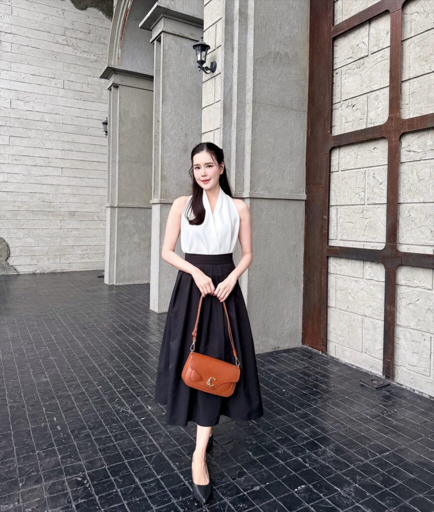ภายใต้คำนิยามของความงามเหนือกาลเวลา “เจี๊ยบ พิจิตตรา” คือหนึ่งในผู้หญิงที่เข้าใจศิลปะแห่งความเรียบหรูได้อย่างลึกซึ้ง ล่าสุดเจี๊ยบได้โพสต์ลุค Monochrome Minimalist ที่ทั้งละเมียดและสง่างาม ในความเรียบแต่หรูหราออร่ามากในลุค White Halter Top สุดมินิมอล จับคู่กับ กระโปรงดำทรงสุภาพ ที่สะท้อนเสน่ห์แบบผู้หญิงเรียบหรู และเพิ่มความสมบูรณ์แบบด้วย กระเป๋าหนังสีน้ำตาลที่ช่วยบาลานซ์โทนลุคให้ดูอ่อนโยน แต่ยังแฝงไว้ด้วยความหรูอย่างมีรสนิยม ท่ามกลางบรรยากาศสถาปัตยกรรมคลาสสิก เจี๊ยบเผยความงดงามเหนือกาลเวลาในทุกมุมภาพ ความนิ่งที่มีพลัง และความงามที่ไม่ต้องพยายามก็ส่องประกายได้เอง