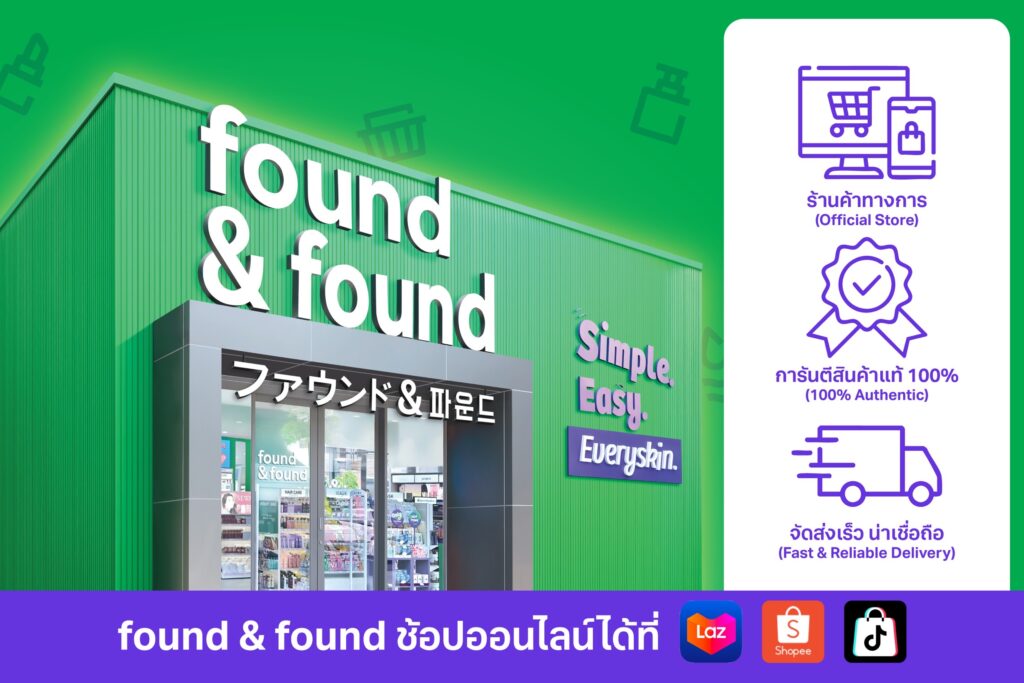 found & found มุ่งต่อยอดความสำเร็จจากหน้าร้านสู่โลกออนไลน์อย่างเต็มกำลัง พัฒนาแพลตฟอร์มอีคอมเมิร์ซให้เป็นหัวใจของกลยุทธ์ Omnichannel เพื่อเชื่อมต่อประสบการณ์ระหว่างออฟไลน์–ออนไลน์–โซเชียลคอมเมิร์ซ สร้างอีโคซิสเท็มค้าปลีกความงามครบวงจรที่เชื่อมโยงทั้งผู้บริโภค พาร์ตเนอร์ และครีเอเตอร์ในยุคดิจิทัลโดยรวบรวมสินค้าความงามคุณภาพจากไทย ญี่ปุ่น และเกาหลีกว่า 100 แบรนด์ ครอบคลุมตั้งแต่ สกินแคร์ เมกอัพ ไปจนถึงผลิตภัณฑ์ดูแลเส้นผมและสุขภาพ เพื่อให้ลูกค้าทุกคนสามารถเข้าถึงผลิตภัณฑ์แท้ได้ง่าย และคุ้มค่ากว่าที่เคยภายใต้แนวคิด ‘SIMPLE. EASY. EVERYSKIN.’