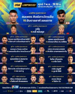 โปรแกรมการแข่งขันทุกคู่ศึก ONE ลุมพินี 132