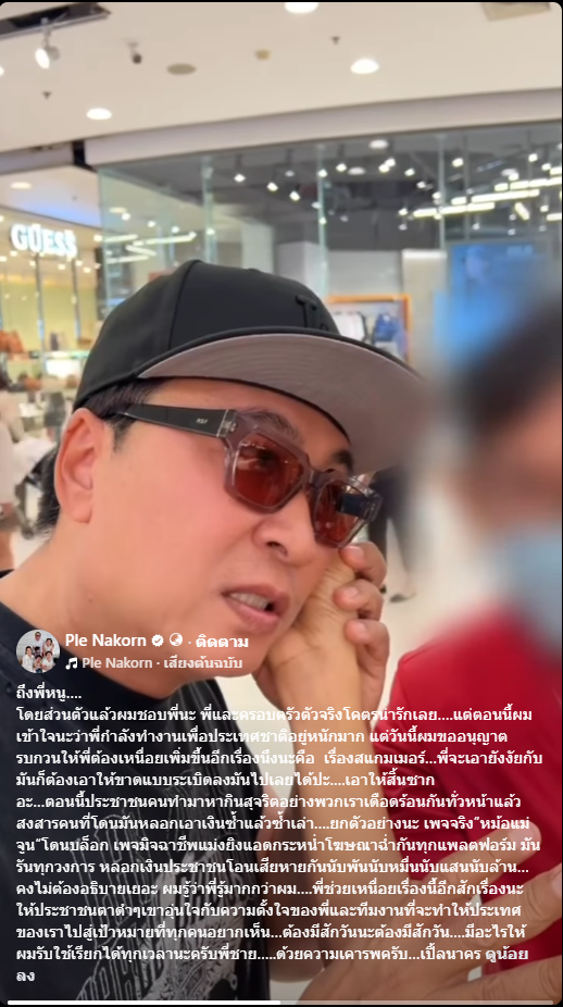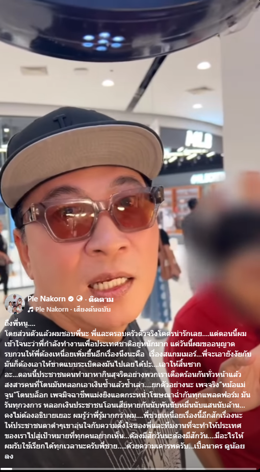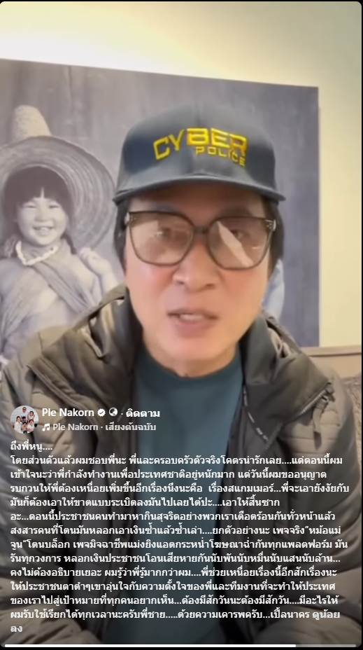 โดยส่วนตัวแล้วผมชอบพี่นะ พี่และครอบครัวตัวจริงโคตรน่ารักเลย….แต่ตอนนี้ผมเข้าใจนะว่าพี่กำลังทำงานเพื่อประเทศชาติอยู่หนักมาก แต่วันนี้ผมขออนุญาตรบกวนให้พี่ต้องเหนื่อยเพิ่มขึ้นอีกเรื่องนึงนะคือ เรื่องสแกมเมอร์…พี่จะเอายังงัยกับมันก็ต้องเอาให้ขาดแบบระเบิดลงมันไปเลยได้ปะ….เอาให้สิ้นซาก
