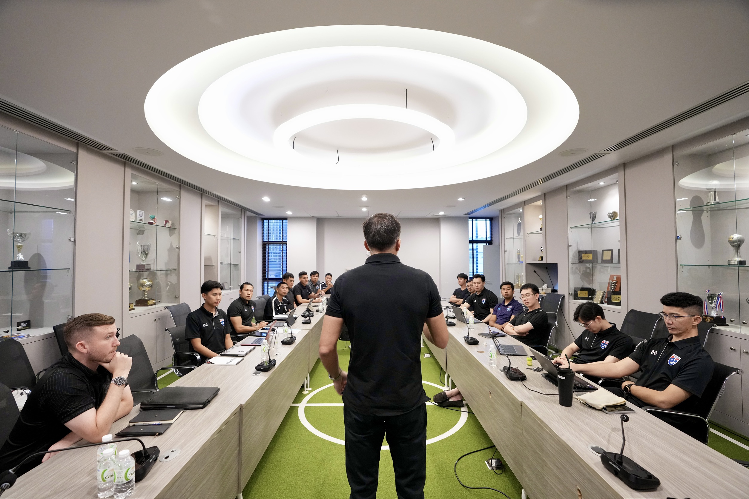 แอนโธนี ฮัดสัน หัวหน้าผู้ฝึกสอนทีมชาติไทย เรียกประชุมสตาฟโค้ชและทีมงาน เพื่อวางแผนแนวทางการทำงานเบื้องหลัง สำหรับสนับสนุนนักฟุตบอลทีมชาติไทย ให้ไปสู่เป้าหมายที่วางไว้