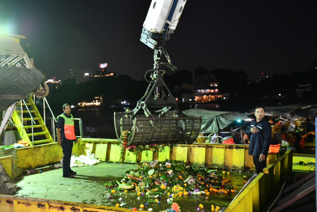พญ.เลิศลักษณ์ ลีลาเรืองแสง รองปลัดกรุงเทพมหานคร นายพรพรหม วิกิตเศรษฐ์ ที่ปรึกษาของผู้ว่าราชการกรุงเทพมหานคร และผู้บริหารด้านความยั่งยืนกรุงเทพมหานคร นายเอกวรัญญู อัมระปาล โฆษกของกรุงเทพมหานคร ตรวจเยี่ยมการปฏิบัติงาน และให้กำลังใจเจ้าหน้าที่ผู้ปฏิบัติงานจัดเก็บกระทงในแม่น้ำเจ้าพระยา ในเทศกาลลอยกระทงประจำปี 2568 ณ บริเวณปากคลองโอ่งอ่าง ฝั่งพระนคร (ใต้สะพานพระปกเกล้า) ก่อนสำนักสิ่งแวดล้อมจะนำไปกำจัดอย่างถูกวิธี