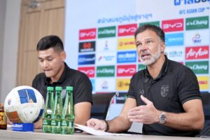 “สามเกมหลังจากนี้ เป็นเกมที่ค่อนข้างซับซ้อน มีความแตกต่างในเรื่องประเภทคู่ต่อสู้ ถ้ามีเวลาเตรียมทีมมากพอ ด้วยคุณภาพของนักกีฬา ผมมั่นใจว่าเป้าหมายของเราคือการเข้ารอบต่อไปของเอเชียน คัพ ก่อนหน้านี้ตัวผมมีประสบการณ์เป็นผู้อำนวยการเทคนิคของสมาคมกีฬาฟุตบอลแห่งประเทศไทยฯ และประสบการณ์ในการทำงานกับทีมชาติต่างๆก่อนหน้านี้ สิ่งสำคัญที่สุดสำหรับผมคือการพัฒนาขุมกำลังทั้งเชิงลึก ที่จะสร้างการแข่งขันในชาติ และในแคมป์ ไม่ใช่แค่ตัวผู้เล่น แต่ทำให้ตัวผมตัดสินใจได้มากขึ้นด้วย โดยเฉพาะการสร้างบรรยากาศการแข่งขันภายในแคมป์ เพื่อให้เกิดการพัฒนาศักยภาพของนักกีฬาให้ดีขึ้นมากกว่าเดิม นี่คือเหตุผลที่ผมพยายามติดตามนักเตะเหล่านี้ เพราะนักกีฬาเหล่านี้มีศักยภาพที่จะทำให้ทีมชาติไทย ไปในทิศทางที่ดีขึ้น และข้อสำคัญต่อมา การเรียกนักกีฬาแต่ละครั้ง อิงจากแคแรคเตอร์ และสไตล์การเล่นที่ตอบสนองกับตัวผม รวมถึงการให้ข้อมูลของผมภายในแคมป์ จากที่อิงมา จากนักกีฬาชุดเดิมก็มีคุณภาพ และศักยภาพ การได้ จู๊ด เบลล์ มาในครั้งนี้ ไม่ได้รับใช้ชาติอย่างเดียว อย่างให้ จู๊ด เข้ามาสอดแทรก และยกระดับคุณภาพของทีมชาติไทย ให้มีศักยภาพมากกว่าเดิม ตอนนี้เอกสารของจู๊ด ทั้งหมดได้ส่งมาที่สมาคมฯ และฟีฟ่า ครบถ้วนแล้ว คิดว่าน่าจะไปทิศทางที่ดีในเรื่องของเอกสารของนักกีฬา ผมก็มีนักฟุตบอลในใจ ที่จะเข้ามาทดแทน ในกรณีที่เอกสารไม่ทันจริงๆ”