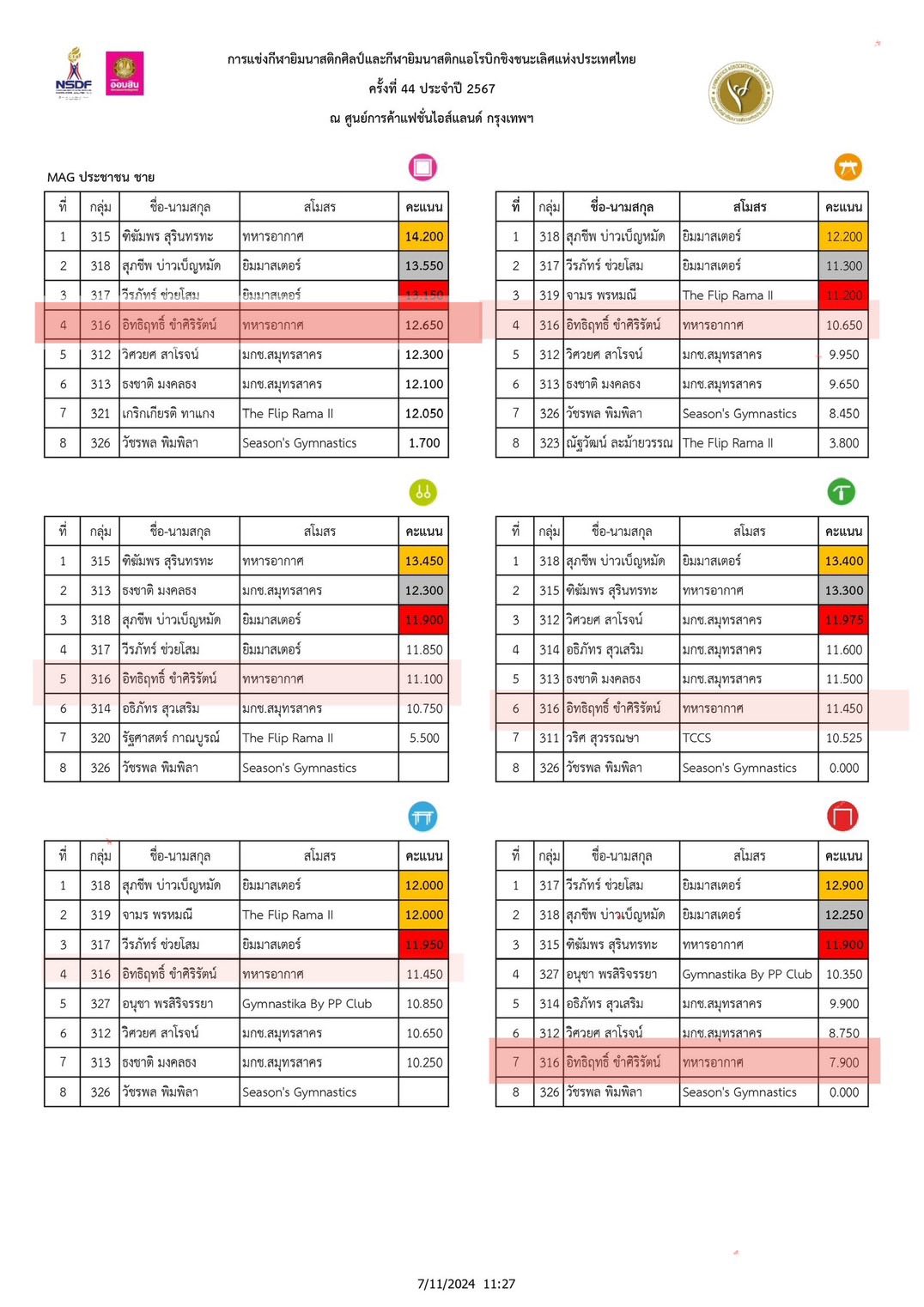 หากติดตามผลการแข่งขันในสหพันธ์กีฬายิมนาสติกนานาชาติ จะเห็นได้ว่าในส่วนแต่ละอุปกรณ์ในเอเชียนเกมส์ 2023 ที่ผู้ร้องเรียนถนัด มีคะแนนที่น้อยกว่า นักกีฬาลูกครึ่ง จึงเป็นเหตุผลที่เขาไม่ถูกเรียกตัวติดทีมชาติลุยซีเกมส์