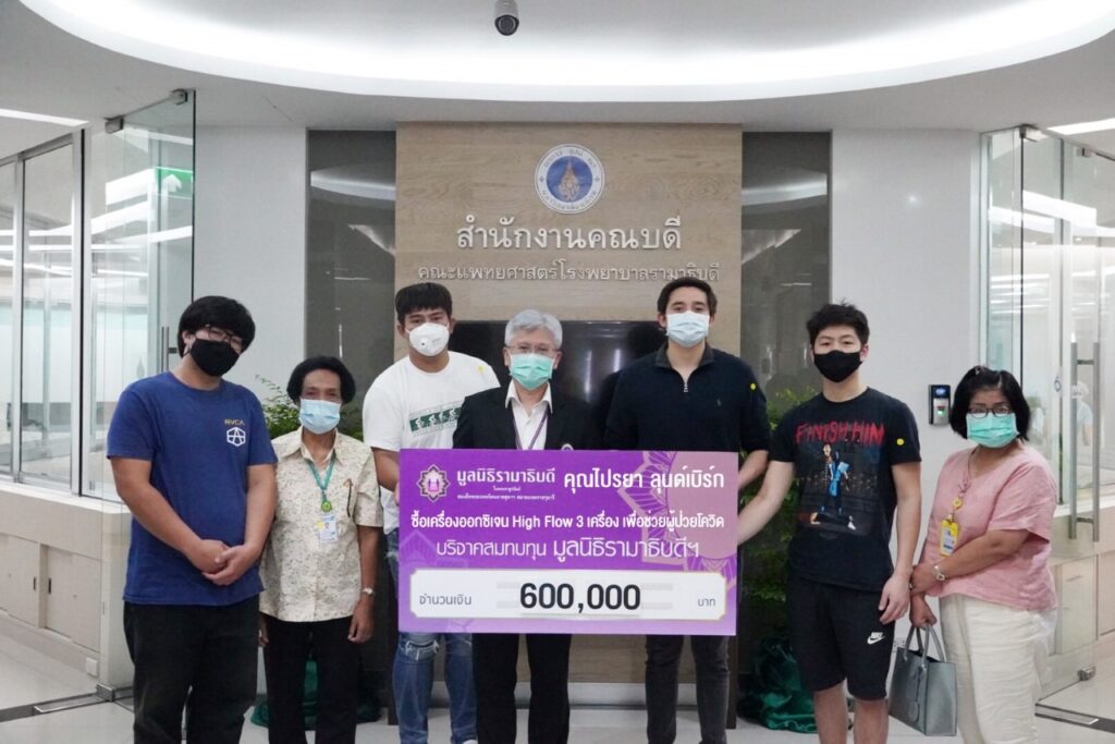 ปู – ไปรยา สวนดอกไม้ ลุนด์เบิร์ก นักแสดงสาวสุดสวยแม้เจ้าตัวจะต้องบินกลับไปอเมริกา เพื่อทำหน้าที่ของตัวเองแล้ว ก็ยังมิวายห่วงใยสถานการณ์โควิด 19 ในประเทศบ้านเกิดของตัวเอง โดนเล็งเห็นว่าบุคลากรทางการแพทย์ได้ทำงานช่วยเหลือผู้ติดเชื้อกันอย่างทุ่มเทเต็มที่แล้ว แต่ก็ยังขาดเครื่องไม้เครื่องมือทางการรักษา จึงได้มอบเงินช่วยเหลือจำนวน แสนบาท ให้กับมูลนิธิรามาธิบดีฯ เพื่อจัดซื้อเครื่องออกซิเจน High Flow จำนวน เครื่อง เพื่อช่วยผู้ป่วยโควิดต่อไป