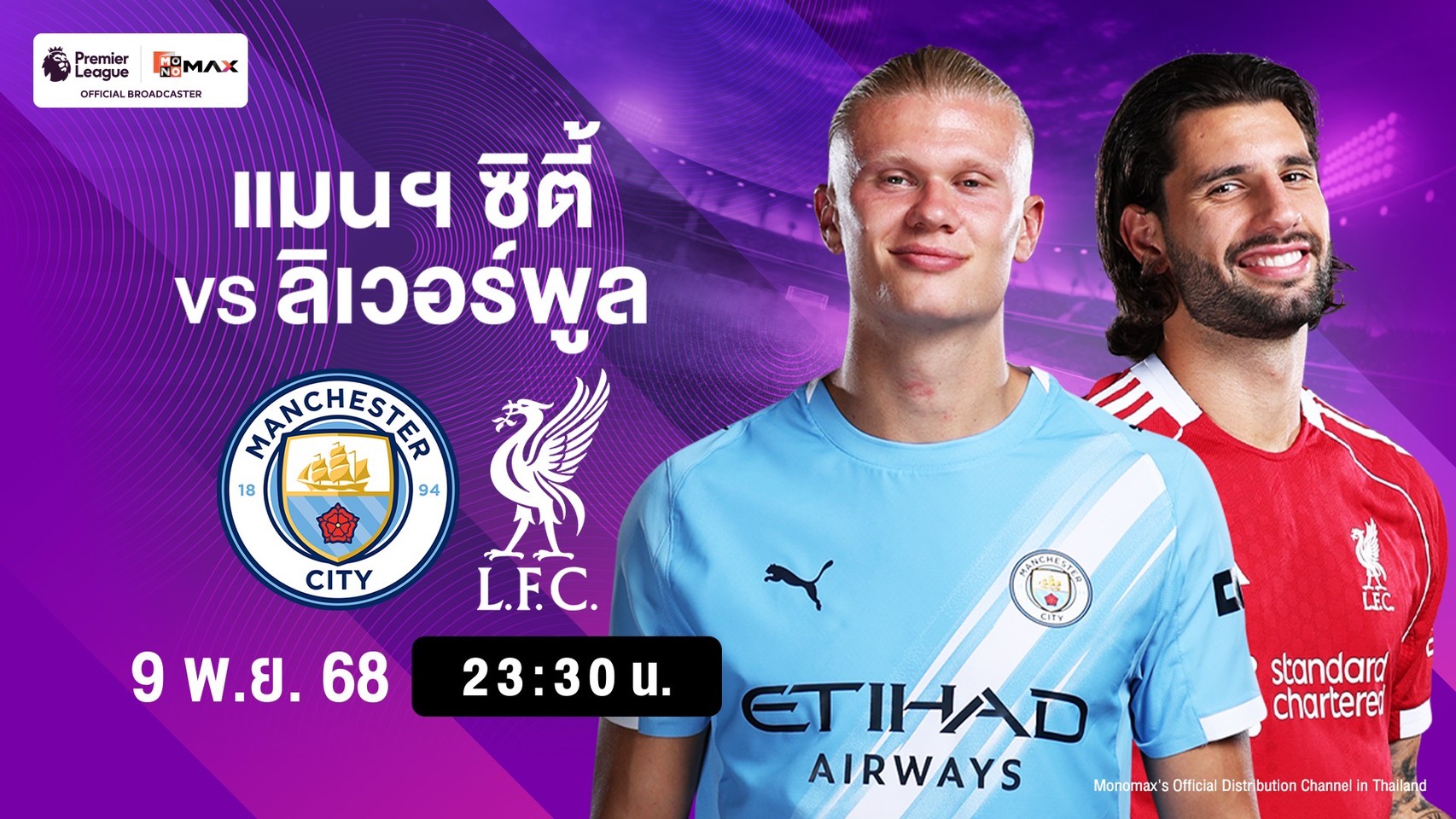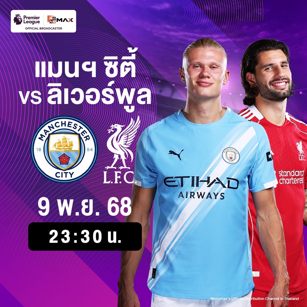 เกมบิ๊กแมตช์ระหว่าง “เรือใบสีฟ้า” แมนเชสเตอร์ ซิตี ทีมรองจ่าฝูง จะเปิดเอติฮัด สเตเดียม รับการมาเยือนของแชมป์เก่า “หงส์แดง” ลิเวอร์พูล ทีมอันดับ 3 ในคืนวันอาทิตย์ที่ 9 พฤศจิกายน เวลา 23.30 น. ถ่ายทอดสดทาง AIS PLAY 502 (MONOMAX2)