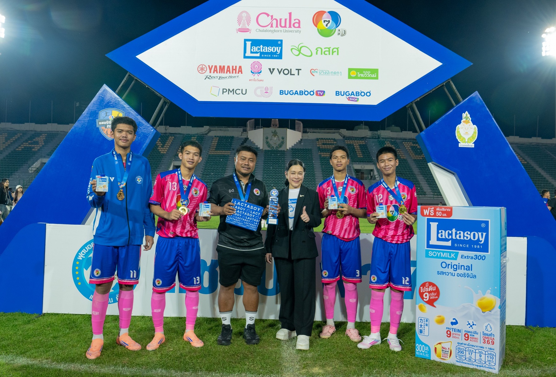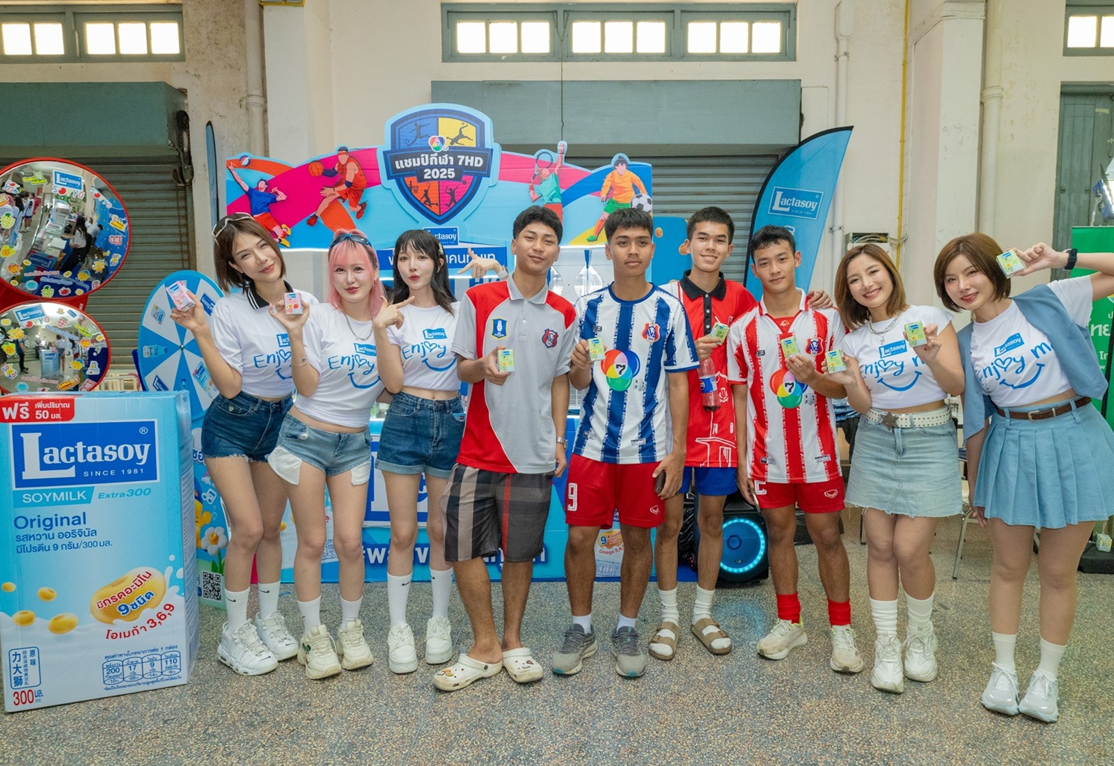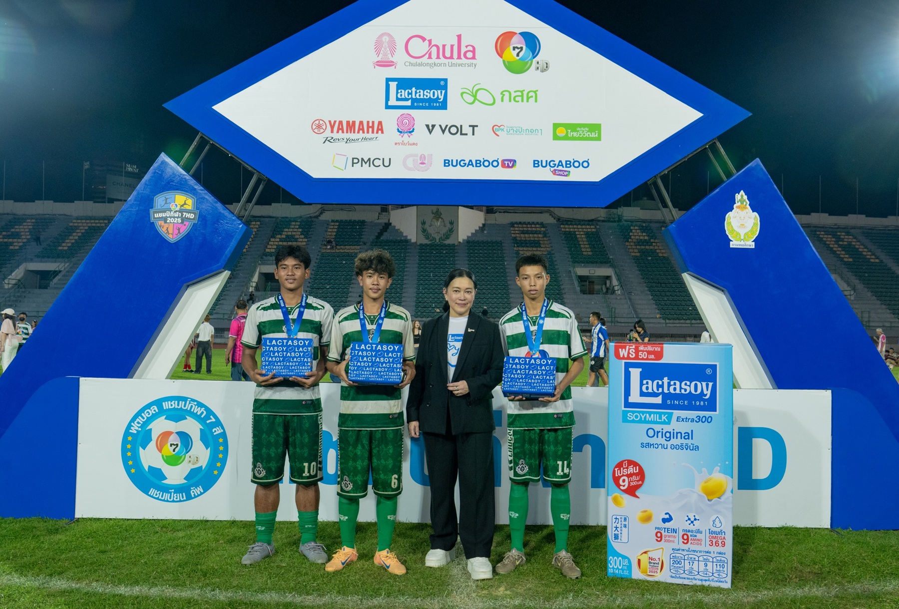 บริษัท แลคตาซอย จำกัด โดย นางสาวพรรณวนา มหาทรัพย์ ผู้จัดการฝ่ายโฆษณาและการตลาดสัมพันธ์ มอบรางวัลของทีมทุ่มเท ให้กับการแข่งขันกีฬาฟุตบอลเยาวชนชาย ในรายการแชมป์กีฬา 7HD 2025 พร้อมมอบผลิตภัณฑ์นมถั่วเหลืองแลคตาซอยให้นักกีฬาได้ดื่มฟรีตลอดทั้งปี ณ สนามศุภชลาศัย เมื่อวันก่อน