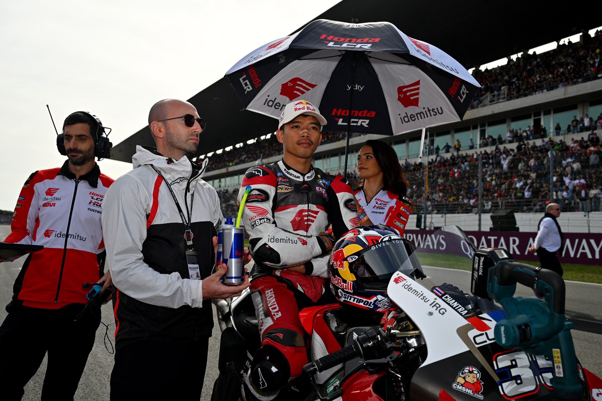 ขณะที่ “ก้อง” สมเกียรติ จันทรา หมายเลข 35 นักบิดขวัญใจชาวไทยจาก อิเดมิตสึ ฮอนด้า แอลซีอาร์ ออกสตาร์ตจากกริดที่ 21 เจอสถานการณ์ท้าทายเรื่องเบรก แต่ยังฮึดสู้บิดเข้าป้ายในอันดับ 17 ในเรซสุดหินด้วยเวลารวม 42 นาที 15.615 วินาที