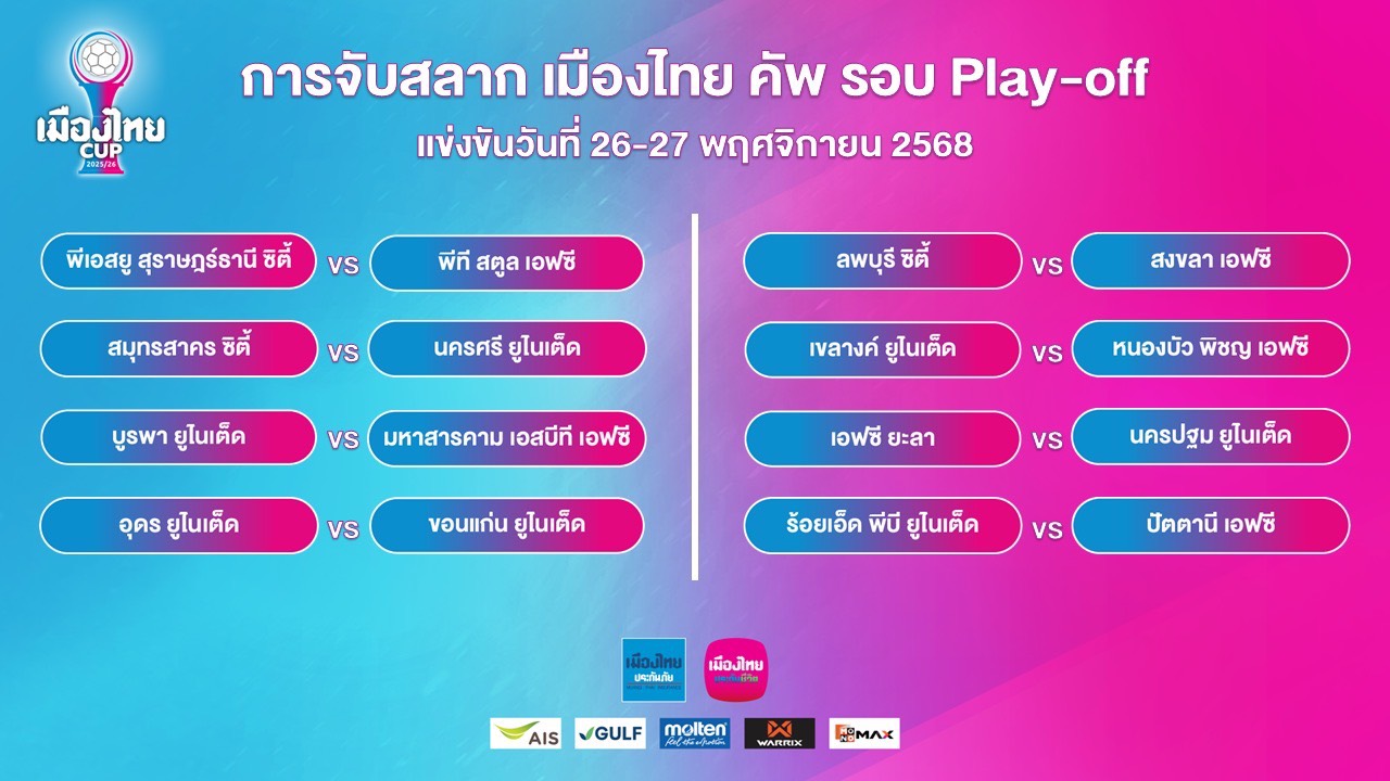 สมาคมฯ จับสลาก “เมืองไทย คัพ” ฤดูกาล 2025/26 รอบเพลย์ออฟ