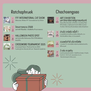 1 พ.ย. 68 – 2 พ.ย. 68 ชวนคนรักแมวมาร่วมงาน FFF International Cat Show ที่กลับมาอีกครั้งในบรรยากาศอบอุ่นต้อนรับฤดูหนาว พบกับน้องแมวสายพันธุ์ต่าง ๆ จากผู้เพาะพันธุ์ระดับประเทศ พร้อมกิจกรรมและมุมถ่ายภาพสุดน่ารัก