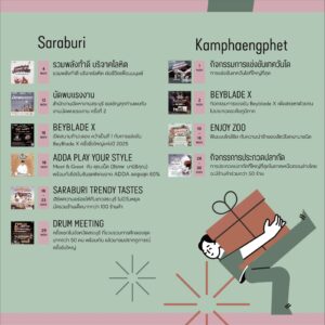 18 พ.ย. 68 – 23 พ.ย. 68 อิ่มอร่อยไม่มีวันหยุดกับงาน “Saraburi Trendy Tastes” ที่รวบรวมร้านเด็ดกว่า 100 ร้านจากทั่วจังหวัด ไม่ว่าจะเป็นอาหารพื้นบ้านรสต้นตำรับ ของหวาน และเครื่องดื่มสุดชิค ให้ทุกคนได้อิ่มอร่อยไปกับบรรยากาศสบาย ๆ สไตล์ชาวสระบุรี