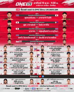 และอย่าลืมส่งกำลังใจเชียร์อีก 2 ตัวแทนไทย ได้แก่ “แสตมป์ แฟร์เท็กซ์” อดีตแชมป์โลก ONE รุ่นอะตอมเวต (105-115 ป.) 3 กติกา ที่คืนสังเวียนในรอบกว่า 2 ปี พบกับ “คานะ โมริโมโตะ” นักชกสาวเจ้าถิ่น ในกติกาคิกบ็อกซิ่ง รุ่นอะตอมเวต และ “เสือคิม สจ.โต้งปราจีน” ปะทะ “เจก พีค็อก” มวยใจสู้จากสหราชอาณาจักร-แคนาดา ภายใต้กติกามวยไทย รุ่นแบนตัมเวต