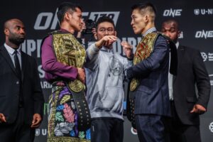 เท่านั้นไม่พอยังมีอีก 2 คู่ ที่จะขึ้นชิงเข็มขัดกันในศึกนี้ โดย “ยูยะ วากามัตสึ” ป้องกันเข็มขัดแชมป์โลก ONE MMA รุ่นฟลายเวต เป็นครั้งแรกกับ “โจชัว พาซิโอ” ราชัน MMA รุ่นสตรอว์เวต ขณะที่ “คริสเตียน ลี” แชมป์โลก ONE MMA รุ่นไลต์เวต (155-170 ป.) และรุ่นเวลเตอร์เวต (170-185 ป.) พบ “อาลิเบก ราซูลอฟ” ในไฟต์รีแมตช์ป้องกันเข็มขัดรุ่นไลต์เวต