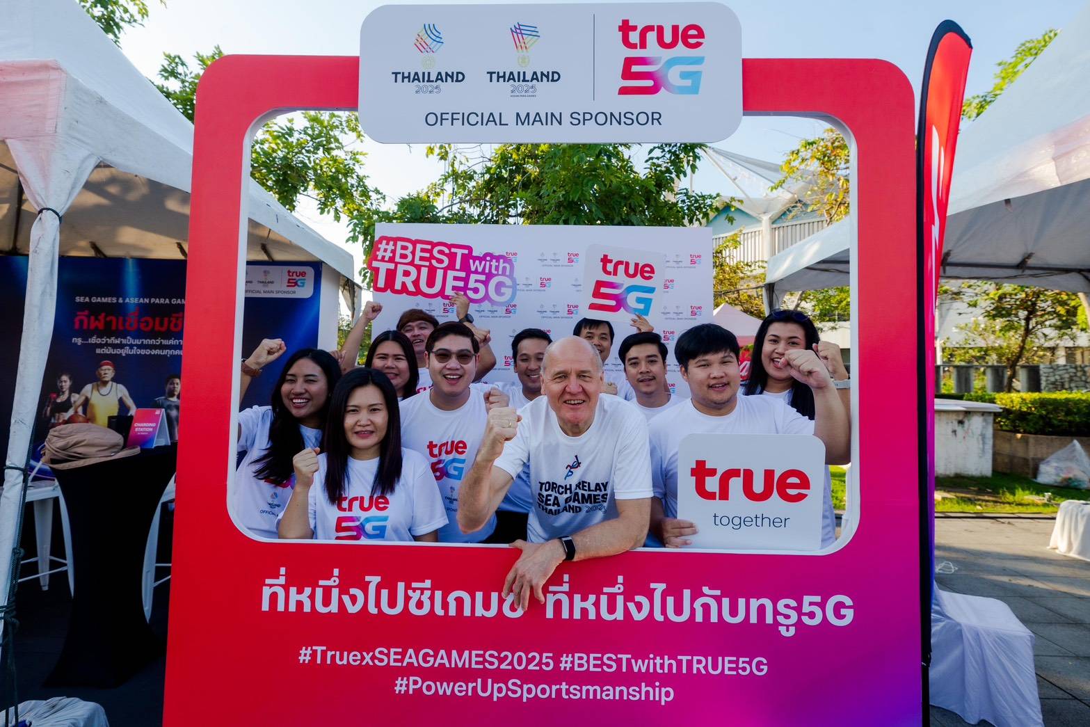 กิจกรรมยิ่งใหญ่ในครั้งนี้ จัดขึ้นพร้อมกัน 4 จังหวัด ได้แก่ กรุงเทพฯ ชลบุรี สงขลา และนครราชสีมา โดยไฮไลต์อยู่ที่ลานหน้าอินดอร์ สเตเดียม หัวหมาก โดยมีคณะผู้บริหาร บริษัท ทรู คอร์ปอเรชั่น จำกัด (มหาชน) นำทีมโดย ซิกเว่ เบรกเก้ ประธานกรรมการบริหาร กลุ่มธุรกิจโทรคมนาคมและดิจิทัล เครือเจริญโภคภัณฑ์ และประธานคณะผู้บริหารกลุ่ม บริษัท ทรู คอร์ปอเรชั่น จำกัด (มหาชน) และผู้บริหารจากบริษัทในเครือซีพี โดย ดร.ธีระพล ถนอมศักดิ์ยุทธประธานคณะผู้บริหารด้านความยั่งยืนองค์กรและการพัฒนากลยุทธ์ เครือเจริญโภคภัณฑ์ ร่วมด้วย นายอรรถกร ศิริลัทธยากร รัฐมนตรีว่าการกระทรวงการท่องเที่ยวและกีฬา, ดร.ชัชชาติ สิทธิพันธุ์ ผู้ว่าราชการกรุงเทพฯ, ดร.ก้องศักด ยอดมณี ผู้ว่าการการกีฬาแห่งประเทศไทย (กกท.) รวมทั้งคณะผู้บริหารและนักกีฬาเข้าร่วมคับคั่ง