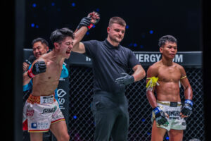 รูดม่านปิดฉากลงอย่างยิ่งใหญ่สำหรับศึก ONE 173 ที่ระเบิดความมันสู่สายตาแฟนกีฬาการต่อสู้ทั่วโลก ตั้งแต่ช่วงสายของวันอาทิตย์ที่ 16 พ.ย. ที่ผ่านมา ณ สนามอาริอาเกะ อารีนา กรุงโตเกียว ประเทศญี่ปุ่นโดยผลปรากฏว่า “ซุปเปอร์บอน ซุปเปอร์บอนเทรนนิงแคมป์” แชมป์โลก ONE คิกบ็อกซิ่ง รุ่นเฟเธอร์เวต (145-155 ป.) สามารถรวบเข็มขัดมาครองแต่เพียงผู้เดียว หลังเอาชนะคะแนนเอกฉันท์ “มาซาอากิ โนอิริ” แชมป์โลกเฉพาะกาล ขณะที่ “นาดากะ” ทุบแต้มเอกฉันท์ “หนุ่มสุรินทร์ ช.เกตุวีณา” จารึกชื่อเป็นแชมป์โลก ONE มวยไทย รุ่นอะตอมเวต (105-115 ป.) คนแรกในประวัติศาสตร์ ได้อย่างสุดยิ่งใหญ่