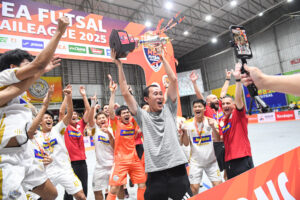 ปิดฉาก MEA ฟุตซอลไทยลีก 2025 ห้องเย็นท่าข้าม คลับ ผงาดคว้าแชมป์สมัยที่ 3 พร้อมรับเงินรางวัล 3 ล้านบาท หลังเปิดบ้านที่ “ห้องเย็นท่าข้ามสนามชัย” จ.สมุทรสาคร ถล่ม สุราษฎร์ธานี 10-2 เก็บได้ 65 แต้ม จาก 26 นัด