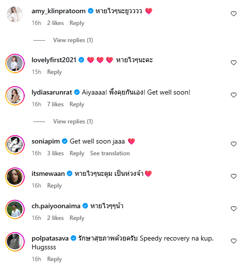 หลังจากที่โพสต์ถูกเผยแพร่ออกไปทางด้านแฟนคลับและเพื่อนนักแสดงก็ได้เข้ามาส่งกำลังใจให้อย่างมากมาย